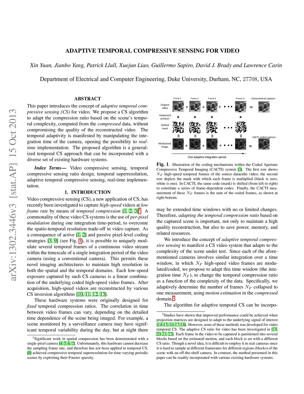 Adaptive Temporal Compressive Sensing for Video
