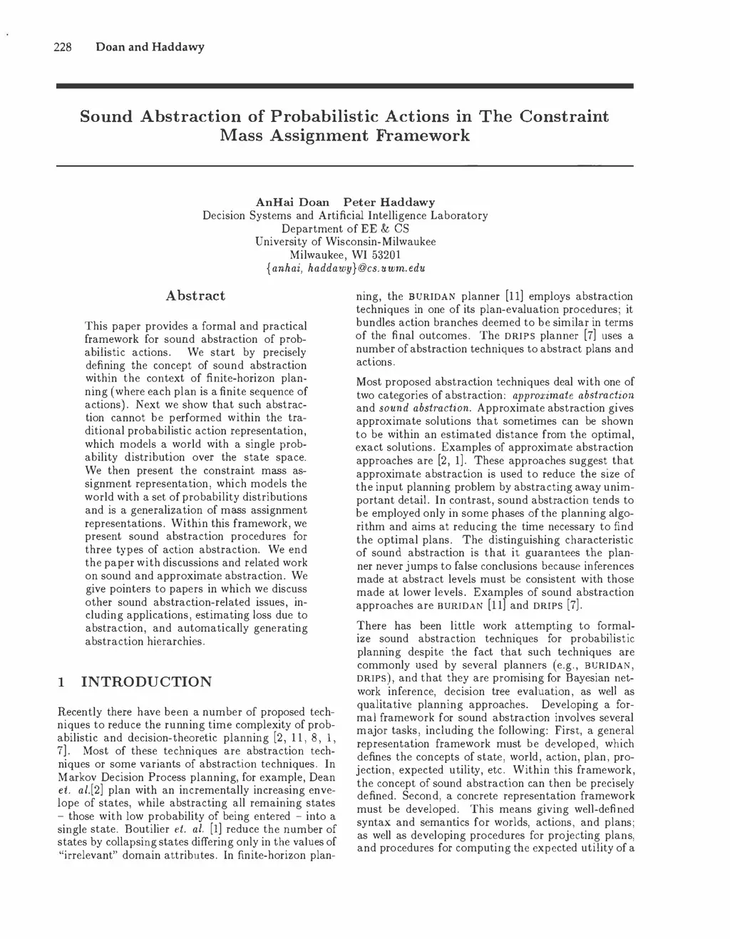 Sound Abstraction of Probabilistic Actions in The Constraint Mass