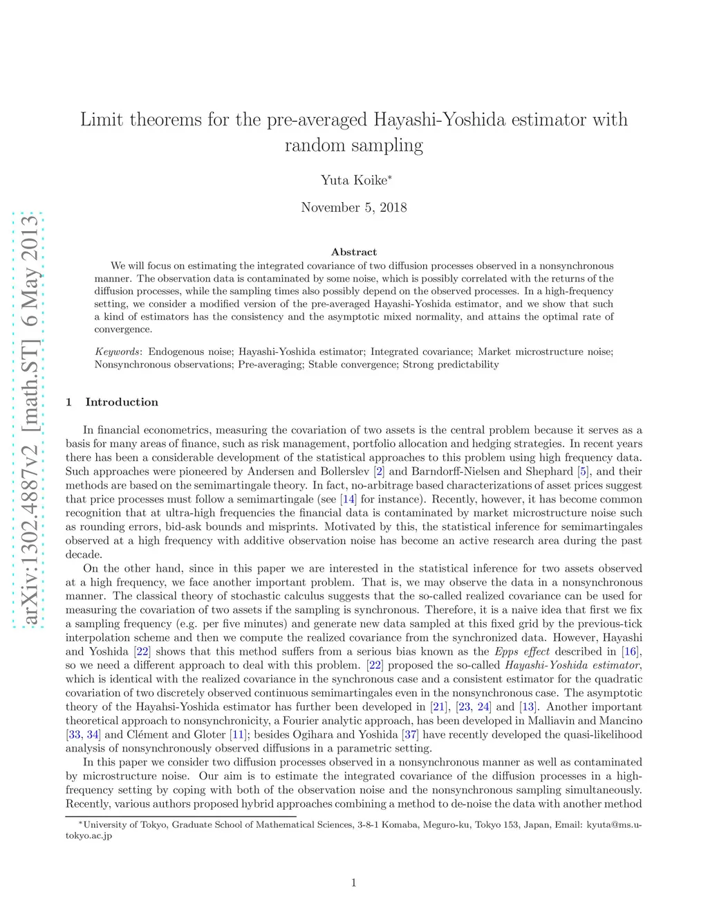 Limit theorems for the pre-averaged Hayashi-Yoshida estimator with