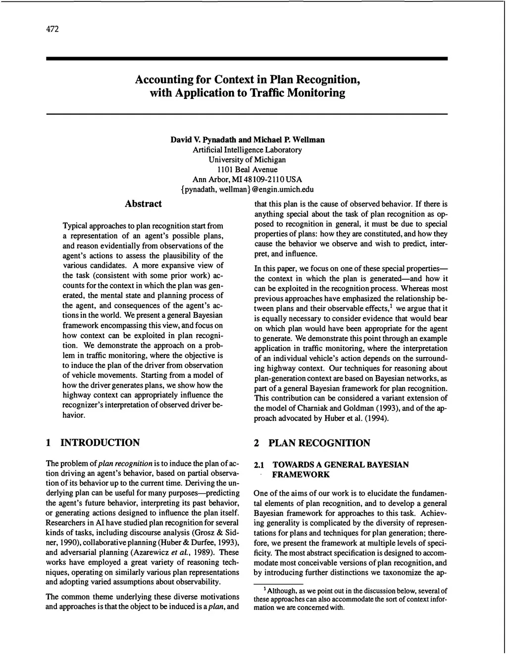 Accounting for Context in Plan Recognition, with Application to Traffic