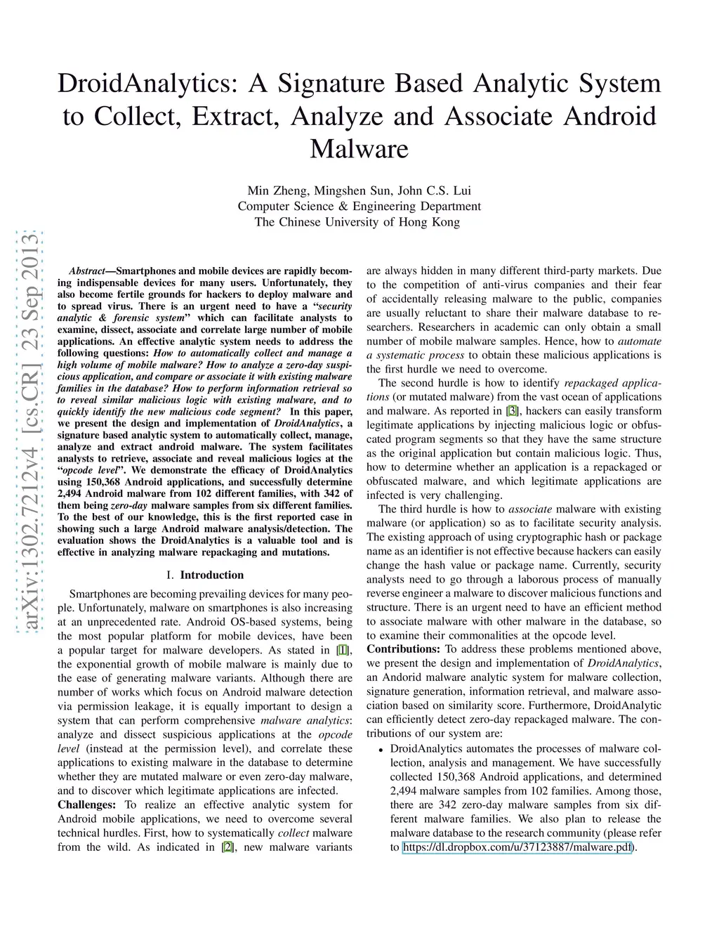 DroidAnalytics: A Signature Based Analytic System to Collect, Extract, Analyze and Associate Android Malware