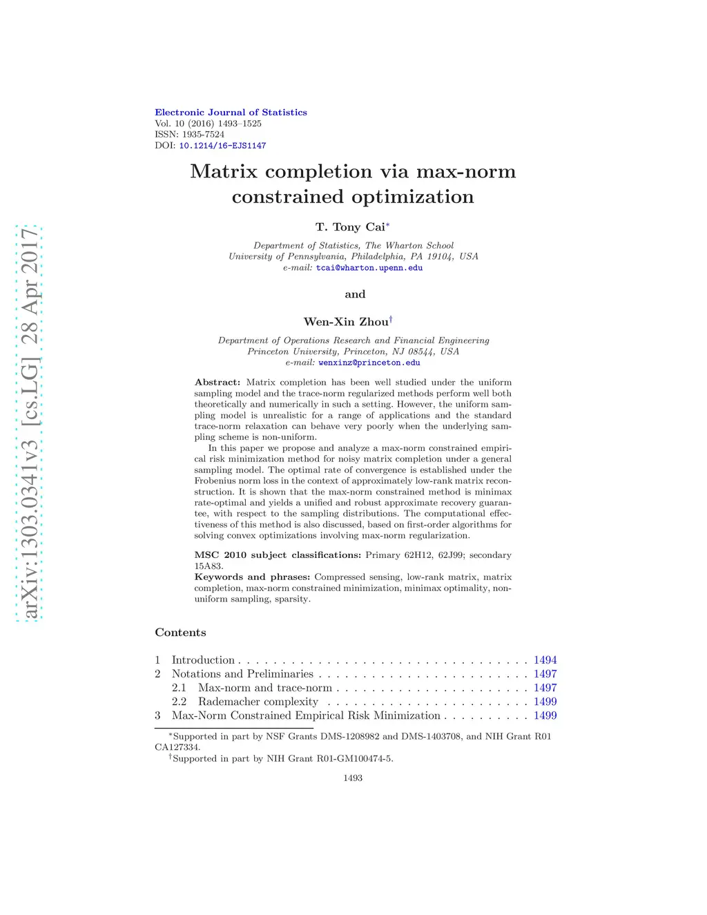 Matrix completion has been well studied under the uniform sampling model and the trace-norm regularized methods perform well both theoretically and numerically in such a setting. However, the uniform sampling model is unrealistic for a range of applications and the standard trace-norm relaxation can behave very poorly when the underlying sampling scheme is non-uniform. In this paper we propose and analyze a max-norm constrained empirical risk minimization method for noisy matrix completion under a general sampling model. The optimal rate of convergence is established under the Frobenius norm loss in the context of approximately low-rank matrix reconstruction. It is shown that the max-norm constrained method is minimax rate-optimal and yields a unified and robust approximate recovery guarantee, with respect to the sampling distributions. The computational effectiveness of this method is also discussed, based on first-order algorithms for solving convex optimizations involving max-norm regularization.