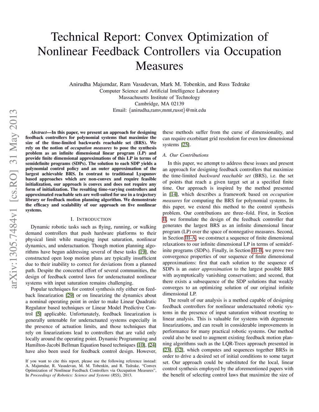 Technical Report: Convex Optimization of Nonlinear Feedback Controllers