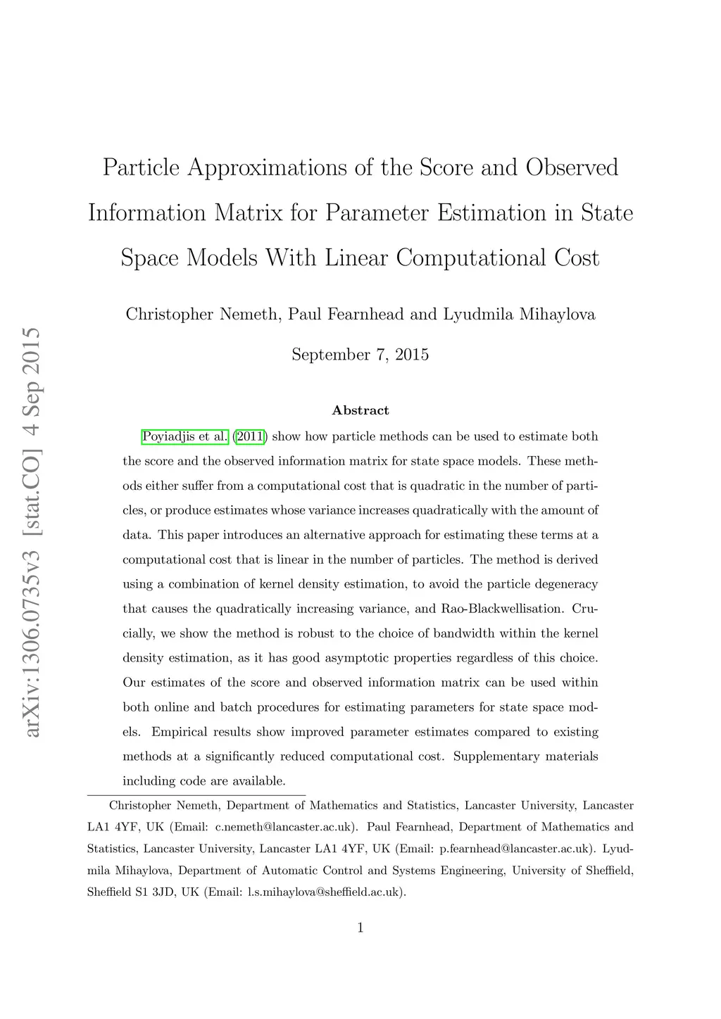 parameter estimation in state space models with linear computational cost