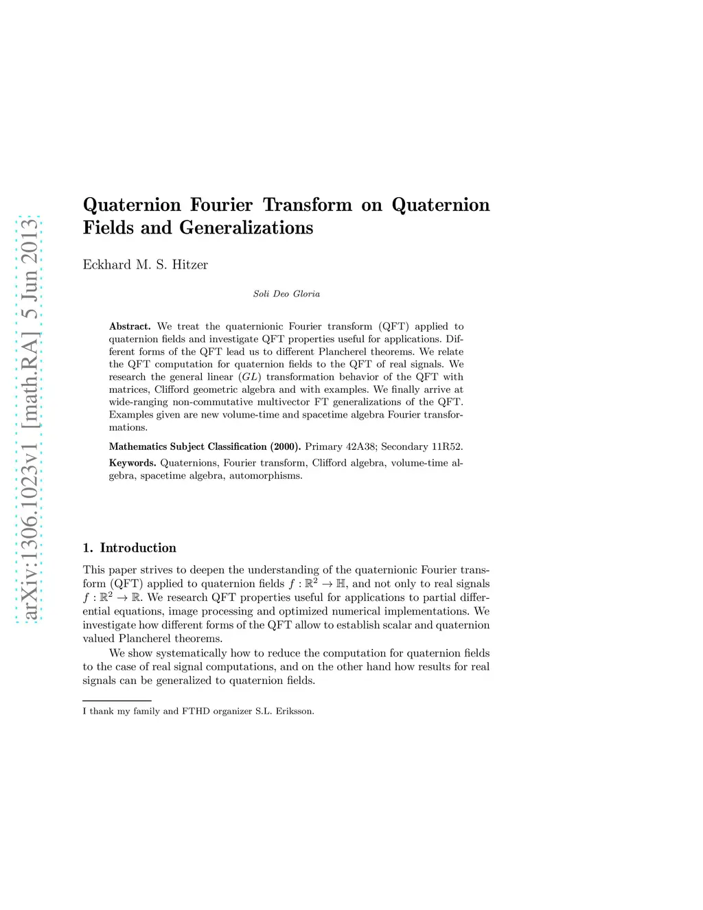 We treat the quaternionic Fourier transform (QFT) applied to quaternion fields and investigate QFT properties useful for applications. Different forms of the QFT lead us to different Plancherel theorems. We relate the QFT computation for quaternion fields to the QFT of real signals. We research the general linear () transformation behavior of the QFT with matrices, Clifford geometric algebra and with examples. We finally arrive at wide-ranging non-commutative multivector FT generalizations of the QFT. Examples given are new volume-time and spacetime algebra Fourier transformations.