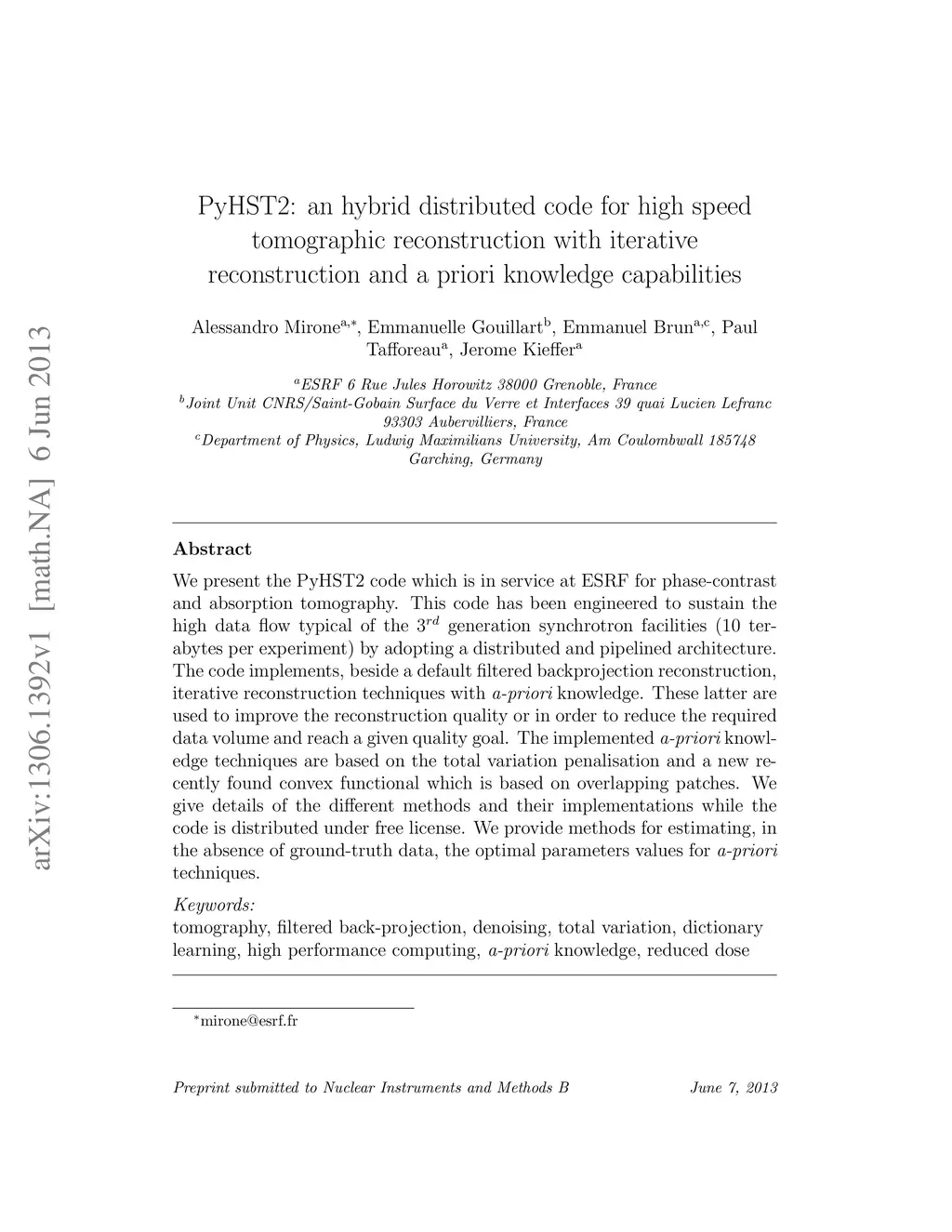 PyHST2: an hybrid distributed code for high speed tomographic
