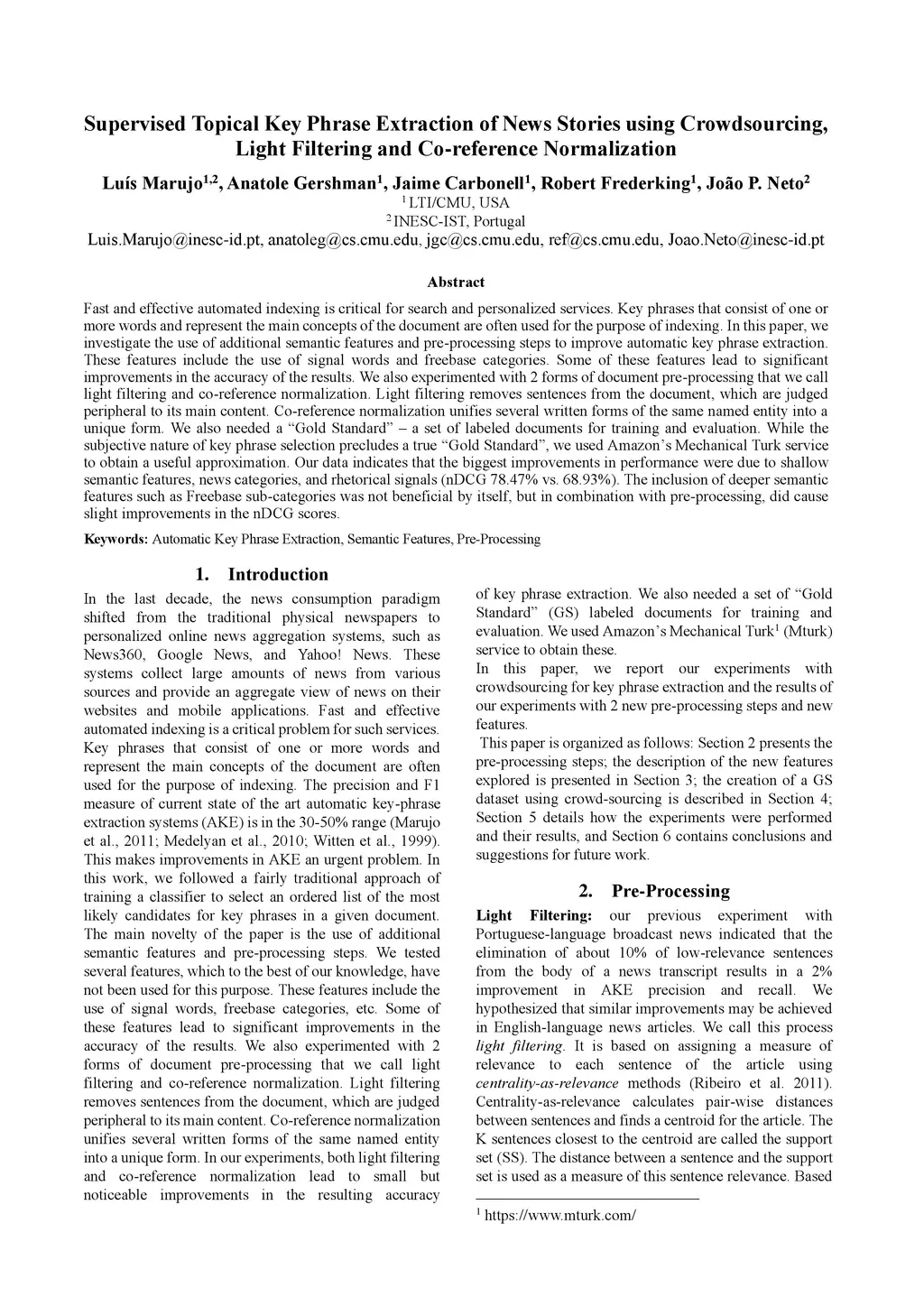 Crowdsourcing, Light Filtering and Co-reference Normalization