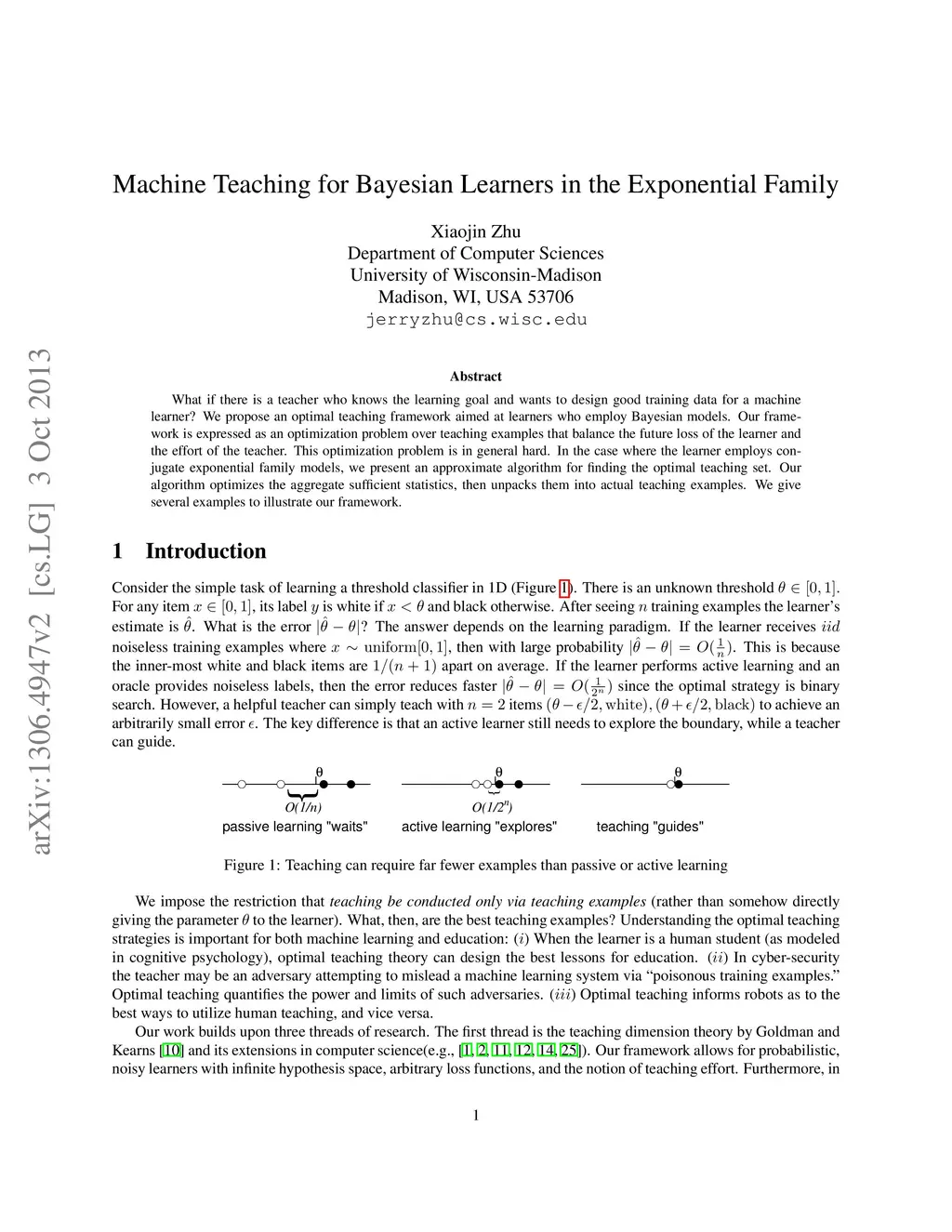What if there is a teacher who knows the learning goal and wants to design good training data for a machine learner? We propose an optimal teaching framework aimed at learners who employ Bayesian models. Our framework is expressed as an optimization problem over teaching examples that balance the future loss of the learner and the effort of the teacher. This optimization problem is in general hard. In the case where the learner employs conjugate exponential family models, we present an approximate algorithm for finding the optimal teaching set. Our algorithm optimizes the aggregate sufficient statistics, then unpacks them into actual teaching examples. We give several examples to illustrate our framework.