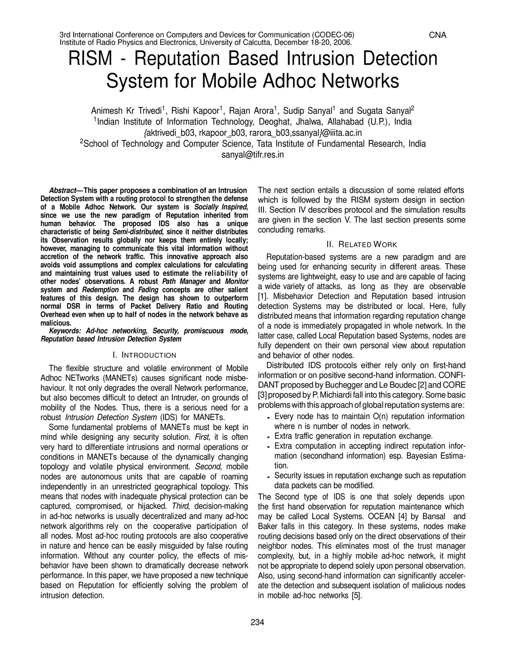 RISM -- Reputation Based Intrusion Detection System for Mobile Ad hoc