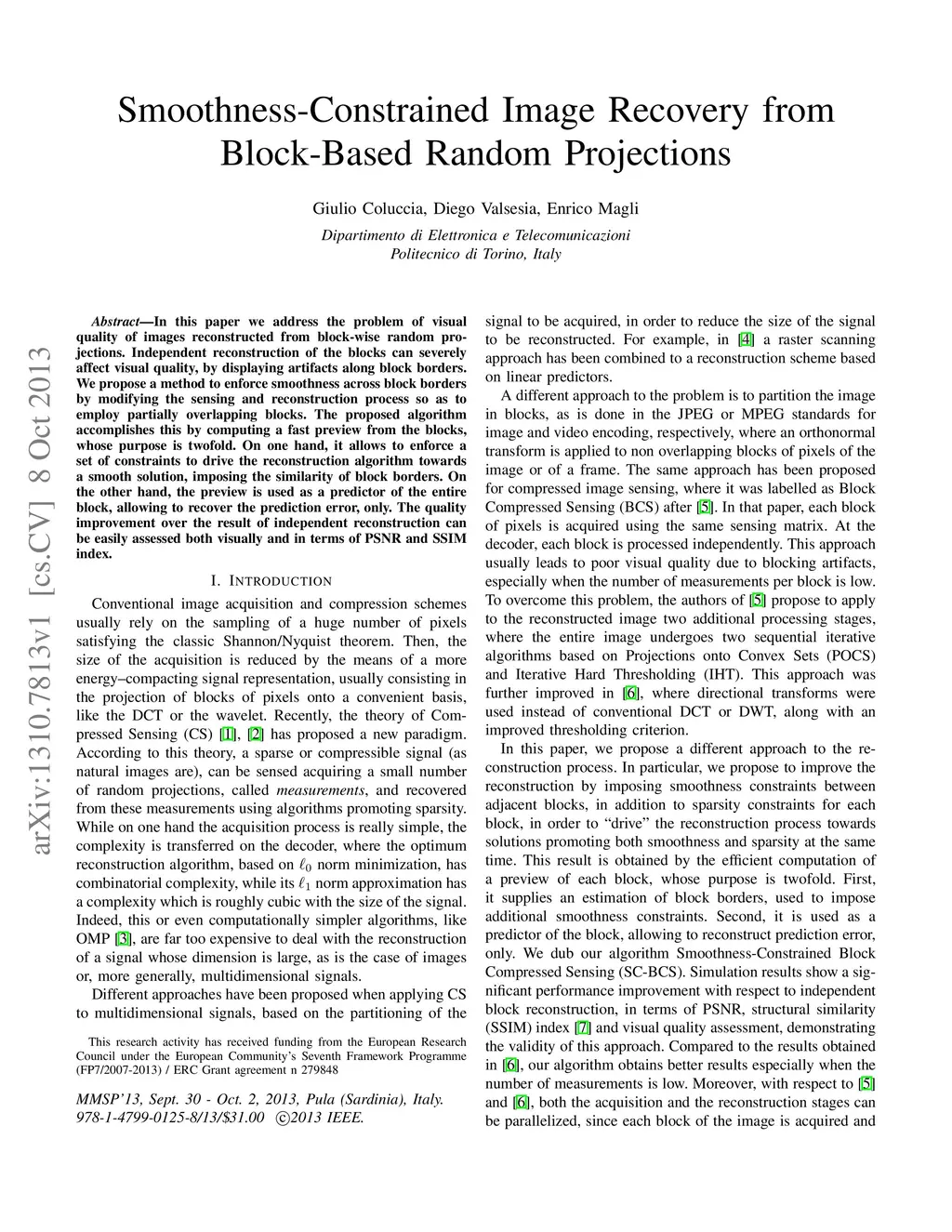 Smoothness-Constrained Image Recovery from Block-Based Random