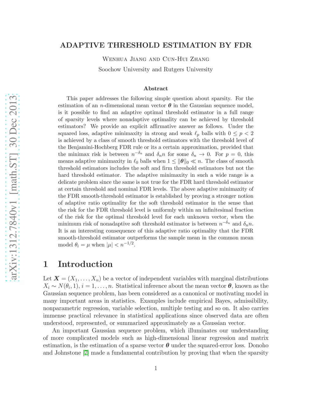 This paper addresses the following simple question about sparsity. For the estimation of an -dimensional mean vector in the Gaussian sequence model, is it possible to find an adaptive optimal threshold estimator in a full range of sparsity levels where nonadaptive optimality can be achieved by threshold estimators? We provide an explicit affirmative answer as follows. Under the squared loss, adaptive minimaxity in strong and weak balls with is achieved by a class of smooth threshold estimators with the threshold level of the Benjamini-Hochberg FDR rule or its a certain approximation, provided that the minimax risk is between and for some . For , this means adaptive minimaxity in balls when . The class of smooth threshold estimators includes the soft and firm threshold estimators but not the hard threshold estimator. The adaptive minimaxity in such a wide range is a delicate problem since the same is not true for the FDR hard threshold estimator at certain threshold and nominal FDR levels. The above adaptive minimaxity of the FDR smooth-threshold estimator is established by proving a stronger notion of adaptive ratio optimality for the soft threshold estimator in the sense that the risk for the FDR threshold level is uniformly within an infinitesimal fraction of the risk for the optimal threshold level for each unknown vector, when the minimum risk of nonadaptive soft threshold estimator is between and . It is an interesting consequence of this adaptive ratio optimality that the FDR smooth-threshold estimator outperforms the sample mean in the common mean model when .