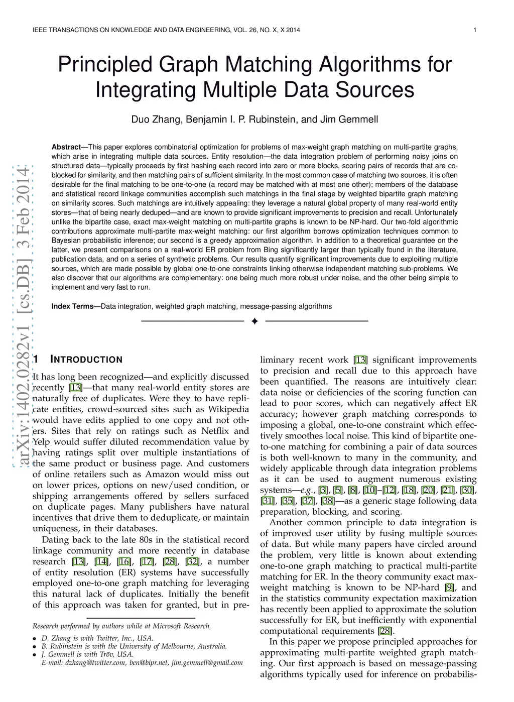 Principled Graph Matching Algorithms for Integrating Multiple Data
