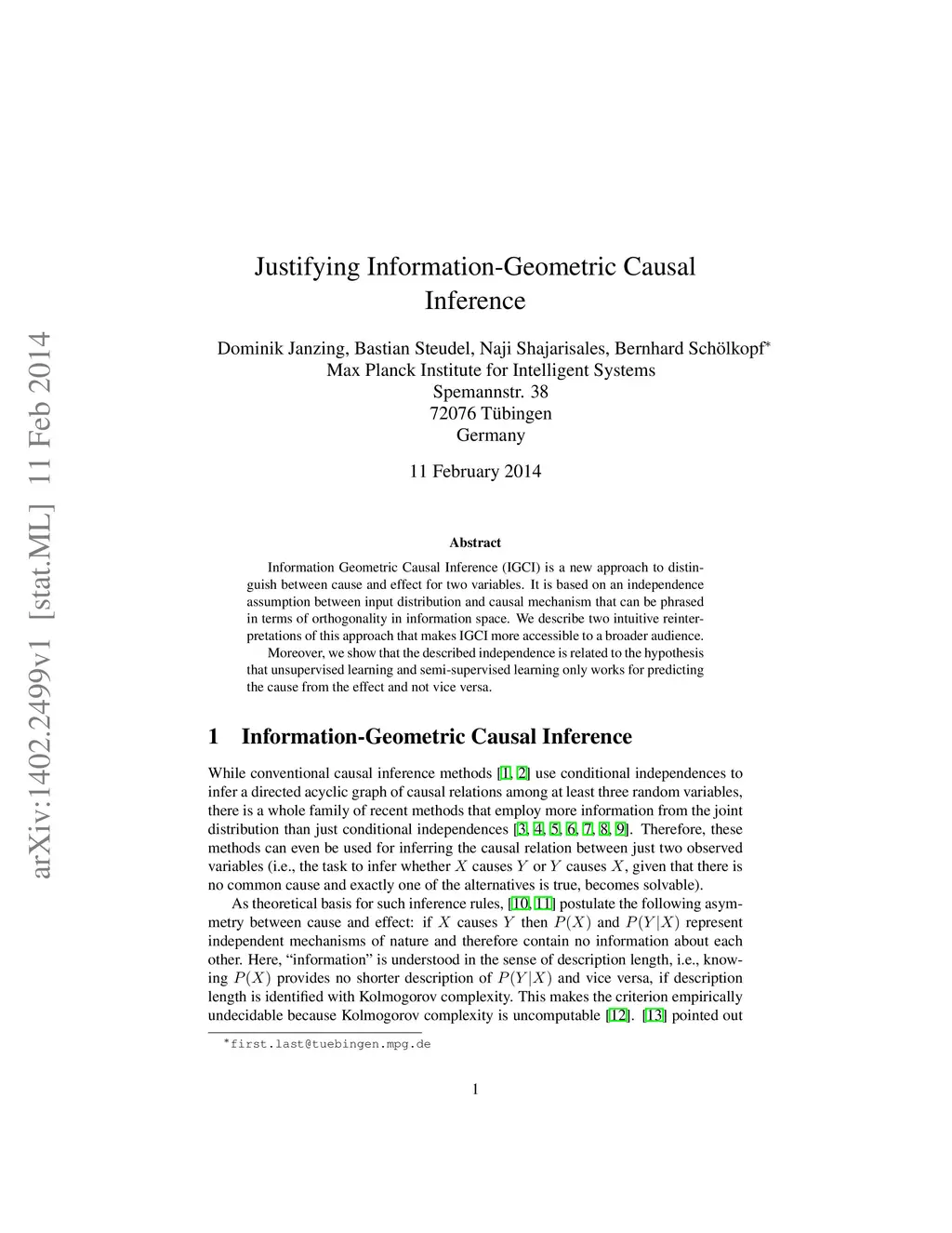 Justifying Information-Geometric Causal Inference