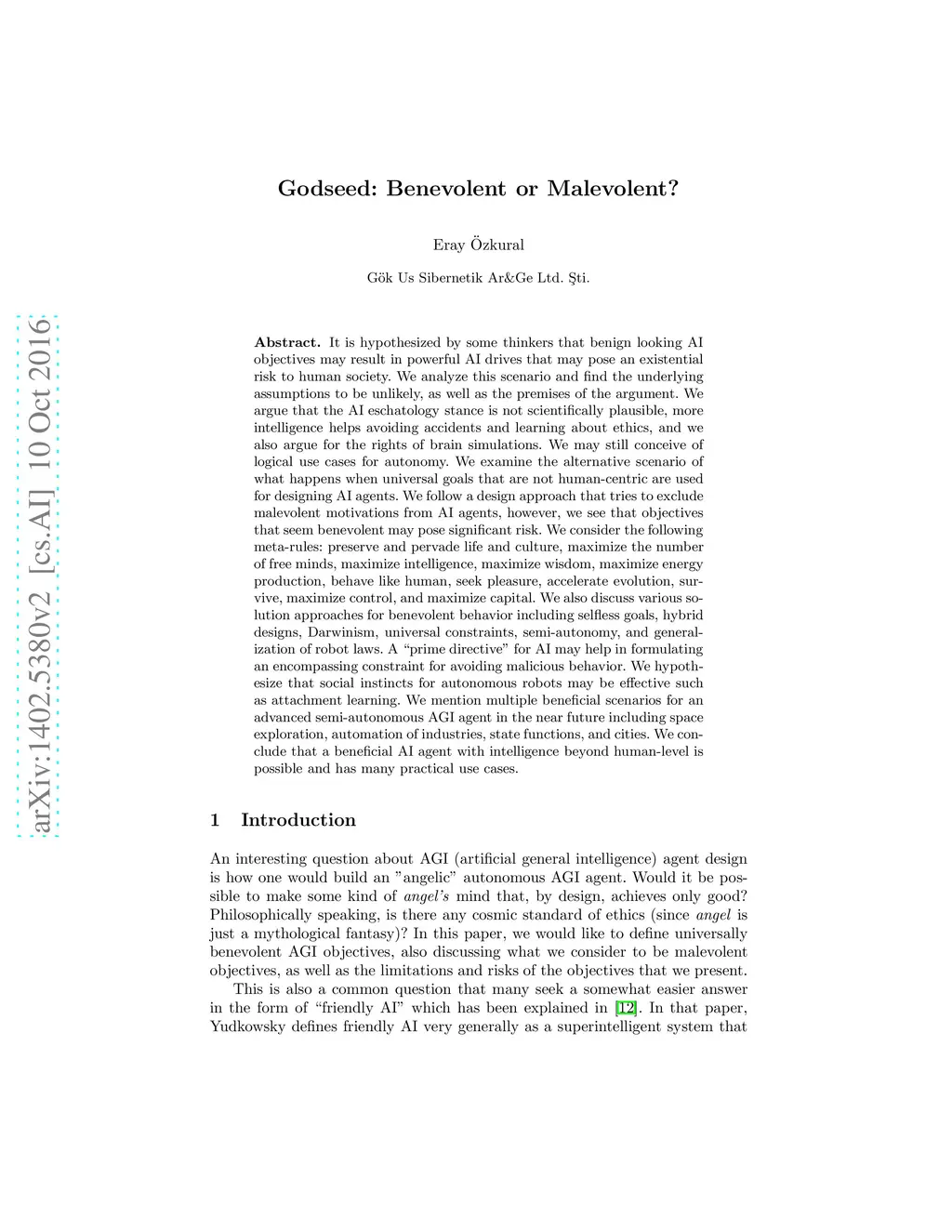 Godseed: Benevolent or Malevolent?