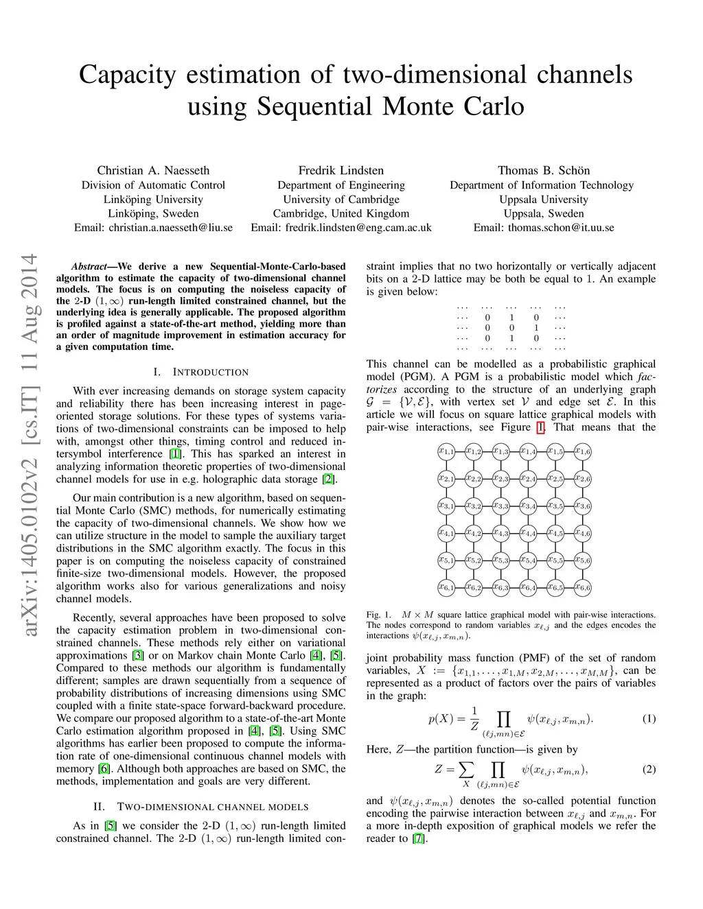 Capacity estimation of two-dimensional channels using Sequential Monte
