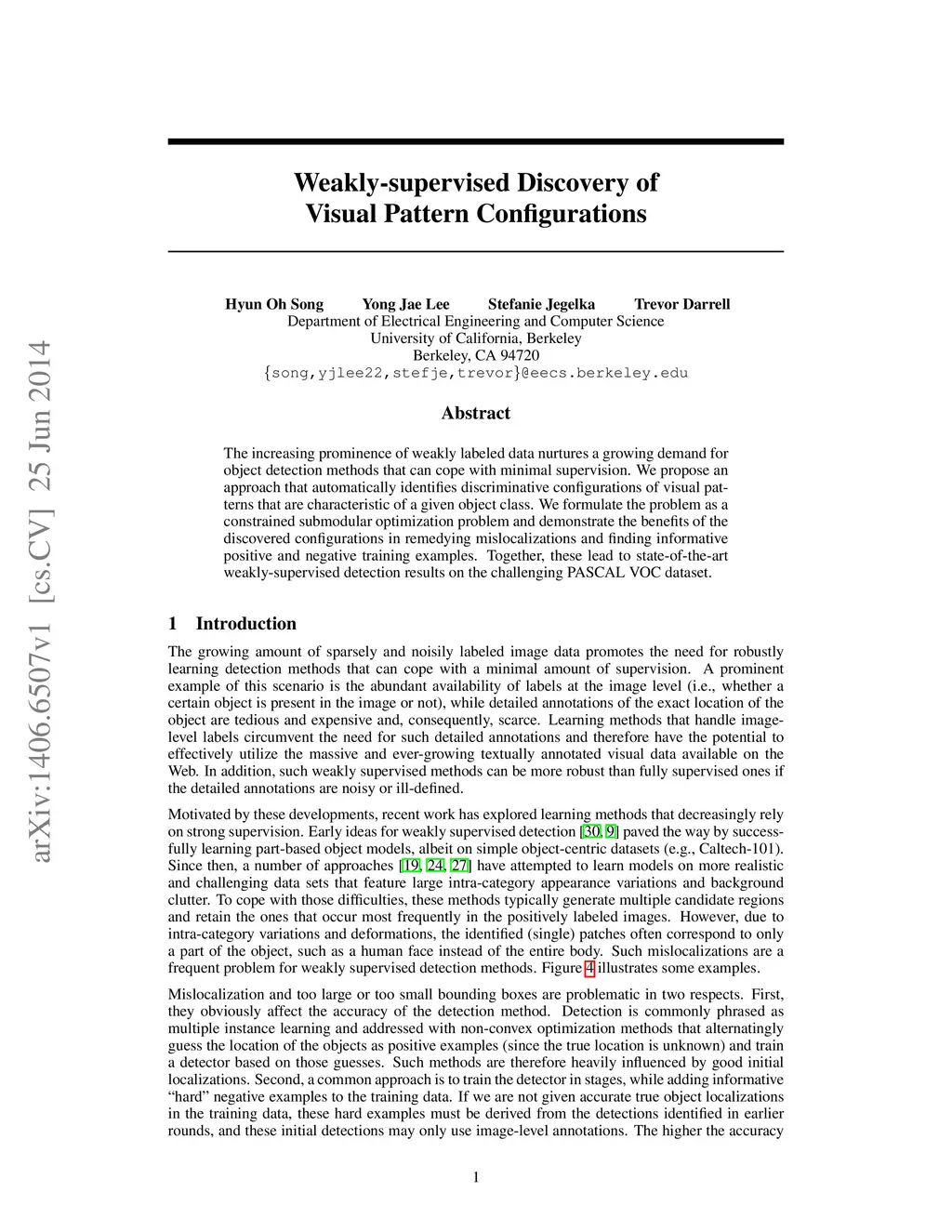 Weakly-supervised Discovery of Visual Pattern Configurations