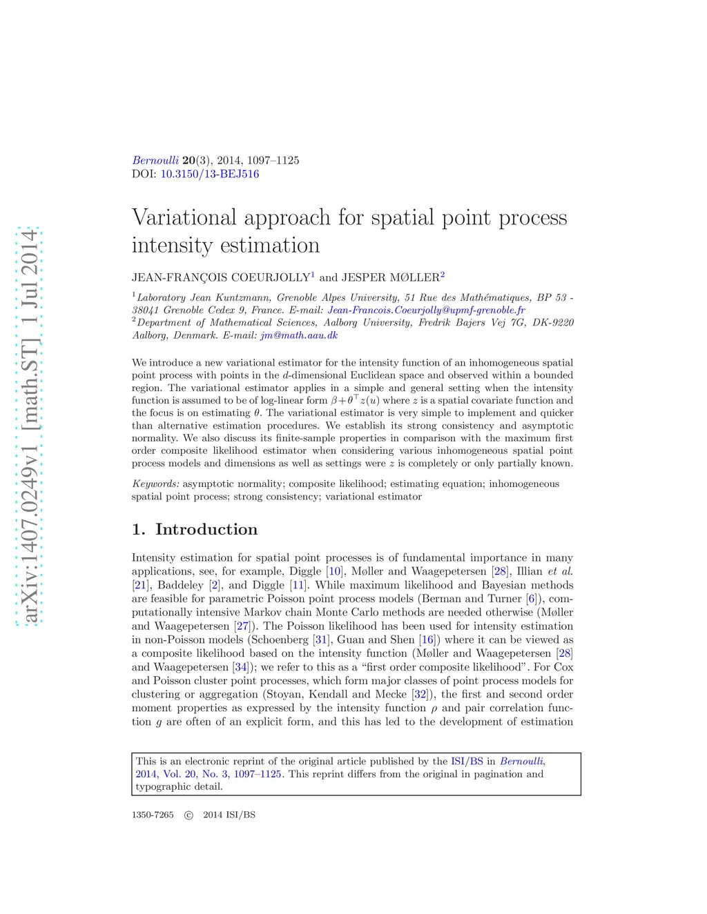 We introduce a new variational estimator for the intensity function of an inhomogeneous spatial point process with points in the -dimensional Euclidean space and observed within a bounded region. The variational estimator applies in a simple and general setting when the intensity function is assumed to be of log-linear form where is a spatial covariate function and the focus is on estimating . The variational estimator is very simple to implement and quicker than alternative estimation procedures. We establish its strong consistency and asymptotic normality. We also discuss its finite-sample properties in comparison with the maximum first order composite likelihood estimator when considering various inhomogeneous spatial point process models and dimensions as well as settings were is completely or only partially known.