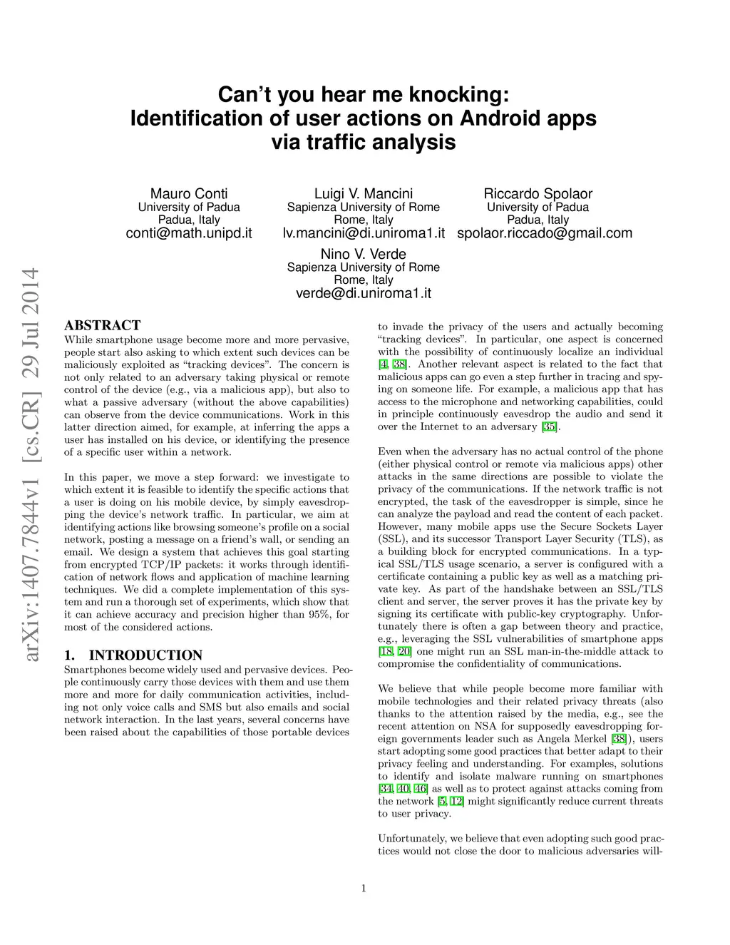 Can't you hear me knocking: Identification of user actions on Android