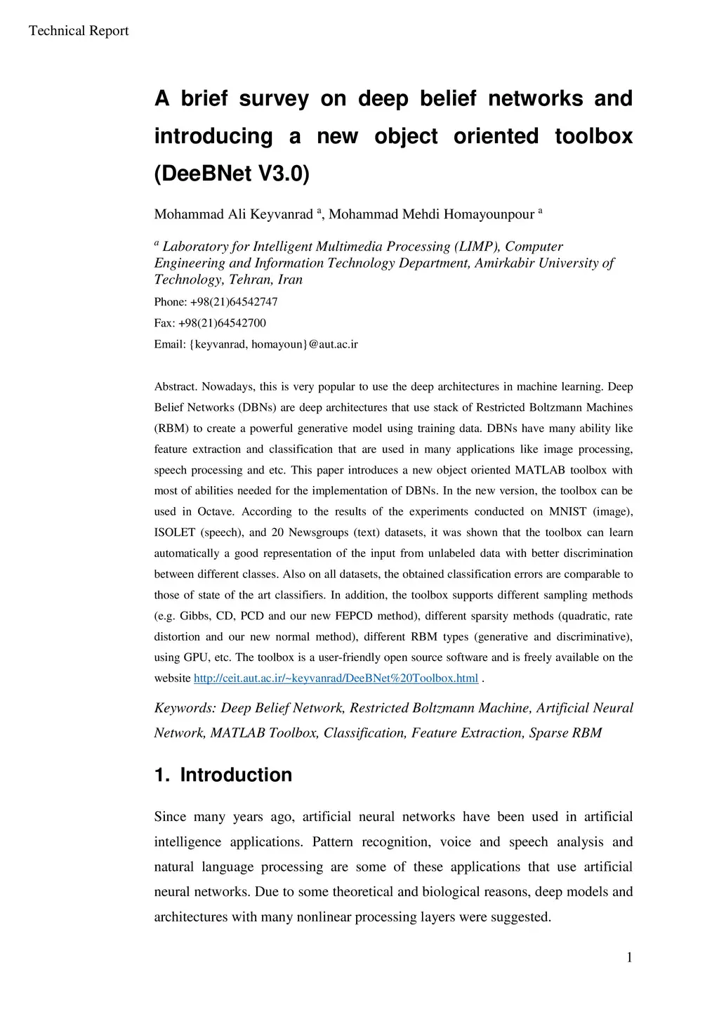 Nowadays, this is very popular to use the deep architectures in machine learning. Deep Belief Networks (DBNs) are deep architectures that use stack of Restricted Boltzmann Machines (RBM) to create a powerful generative model using training data. DBNs have many ability like feature extraction and classification that are used in many applications like image processing, speech processing and etc. This paper introduces a new object oriented MATLAB toolbox with most of abilities needed for the implementation of DBNs. In the new version, the toolbox can be used in Octave. According to the results of the experiments conducted on MNIST (image), ISOLET (speech), and 20 Newsgroups (text) datasets, it was shown that the toolbox can learn automatically a good representation of the input from unlabeled data with better discrimination between different classes. Also on all datasets, the obtained classification errors are comparable to those of state of the art classifiers. In addition, the toolbox supports different sampling methods (e.g. Gibbs, CD, PCD and our new FEPCD method), different sparsity methods (quadratic, rate distortion and our new normal method), different RBM types (generative and discriminative), using GPU, etc. The toolbox is a user-friendly open source software and is freely available on the website http://ceit.aut.ac.ir/~keyvanrad/DeeBNet%20Toolbox.html .