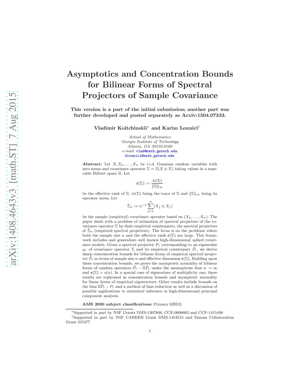 Let be i.i.d. Gaussian random variables with zero mean and covariance operator taking values in a separable Hilbert space Let be the effective rank of being the trace of and being its operator norm. Let be the sample (empirical) covariance operator based on The paper deals with a problem of estimation of spectral projectors of the covariance operator by their empirical counterparts, the spectral projectors of (empirical spectral projectors). The focus is on the problems where both the sample size and the effective rank are large. This framework includes and generalizes well known high-dimensional spiked covariance models. Given a spectral projector corresponding to an eigenvalue of covariance operator and its empirical counterpart we derive sharp concentration bounds for bilinear forms of empirical spectral projector in terms of sample size and effective dimension Building upon these concentration bounds, we prove the asymptotic normality of bilinear forms of random operators under the assumptions that and In a special case of eigenvalues of multiplicity one, these results are rephrased as concentration bounds and asymptotic normality for linear forms of empirical eigenvectors. Other results include bounds on the bias and a method of bias reduction as well as a discussion of possible applications to statistical inference in high-dimensional principal component analysis.