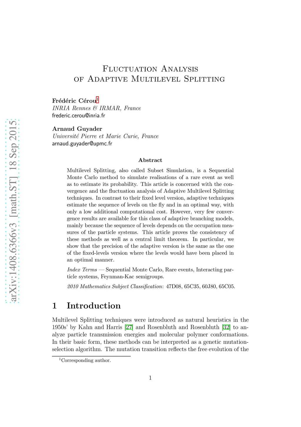 Multilevel Splitting is a Sequential Monte Carlo method to simulate realisations of a rare event as well as to estimate its probability. This article is concerned with the convergence and the fluctuation analysis of Adaptive Multilevel Splitting techniques. In contrast to their fixed level version, adaptive techniques estimate the sequence of levels on the fly and in an optimal way, with only a low additional computational cost. However, very few convergence results are available for this class of adaptive branching models, mainly because the sequence of levels depends on the occupation measures of the particle systems. This article proves the consistency of these methods as well as a central limit theorem. In particular, we show that the precision of the adaptive version is the same as the one of the fixed-levels version where the levels would have been placed in an optimal manner.