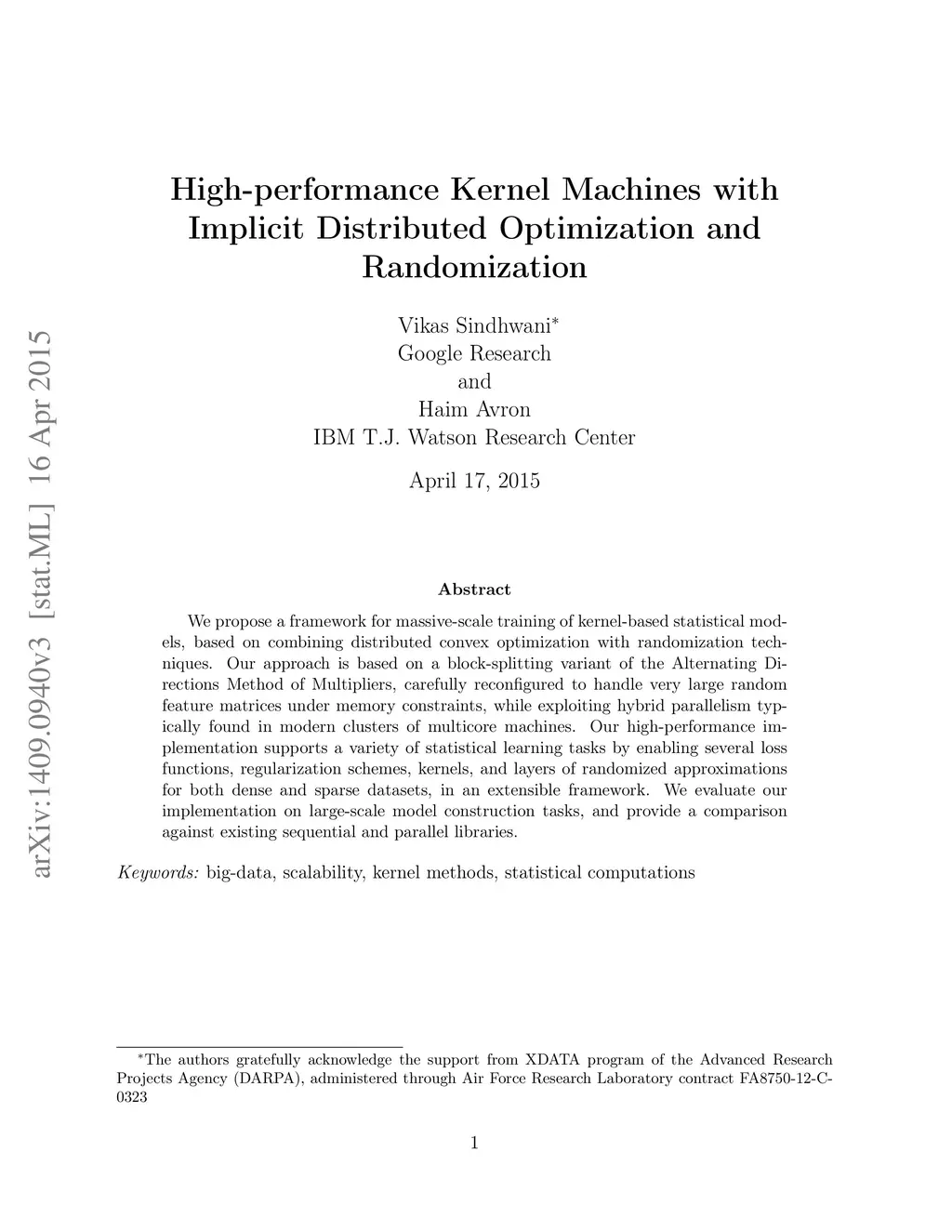 High-performance Kernel Machines with Implicit Distributed Optimization