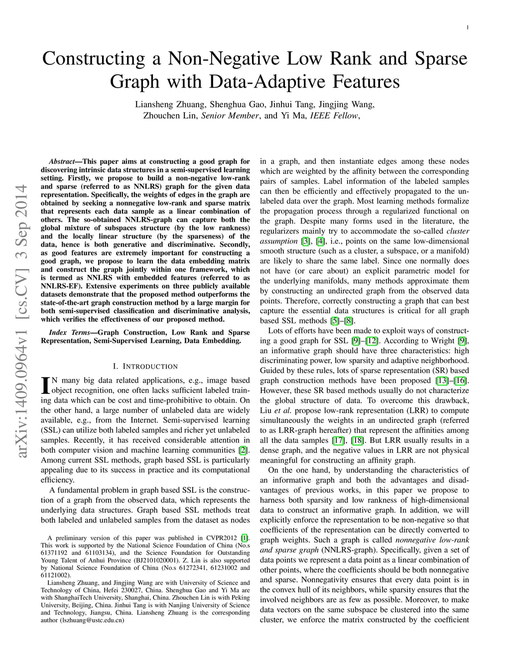 Constructing a Non-Negative Low Rank and Sparse Graph with Data-Adaptive