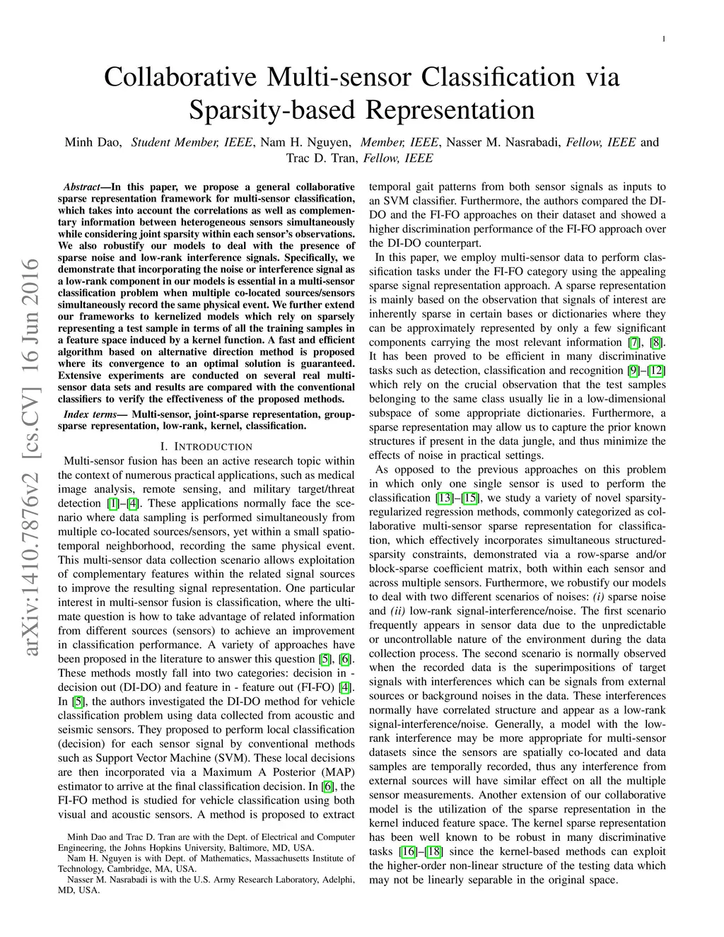 Collaborative Multi-sensor Classification via Sparsity-based