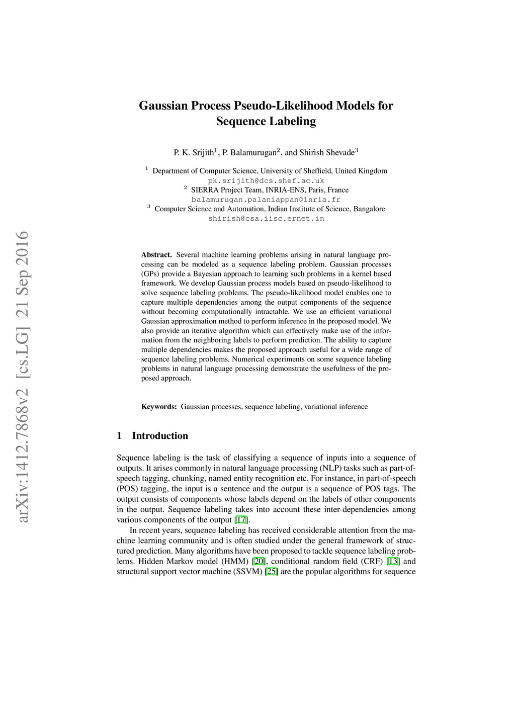 Gaussian Process Pseudo-Likelihood Models for Sequence Labeling