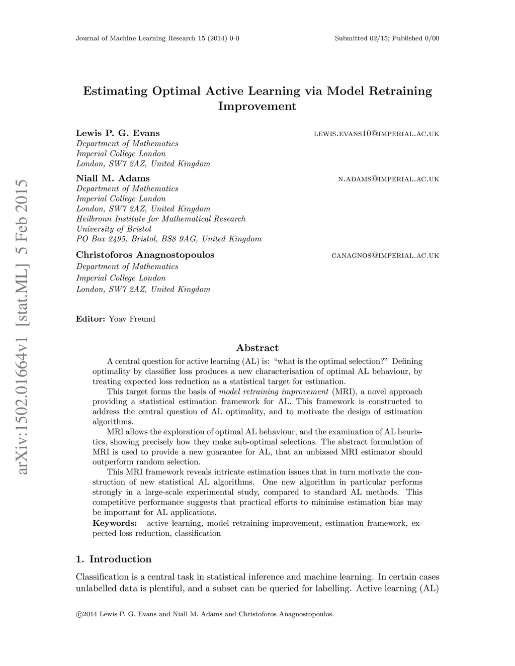 A central question for active learning (AL) is: "what is the optimal selection?" Defining optimality by classifier loss produces a new characterisation of optimal AL behaviour, by treating expected loss reduction as a statistical target for estimation. This target forms the basis of model retraining improvement (MRI), a novel approach providing a statistical estimation framework for AL. This framework is constructed to address the central question of AL optimality, and to motivate the design of estimation algorithms. MRI allows the exploration of optimal AL behaviour, and the examination of AL heuristics, showing precisely how they make sub-optimal selections. The abstract formulation of MRI is used to provide a new guarantee for AL, that an unbiased MRI estimator should outperform random selection. This MRI framework reveals intricate estimation issues that in turn motivate the construction of new statistical AL algorithms. One new algorithm in particular performs strongly in a large-scale experimental study, compared to standard AL methods. This competitive performance suggests that practical efforts to minimise estimation bias may be important for AL applications.