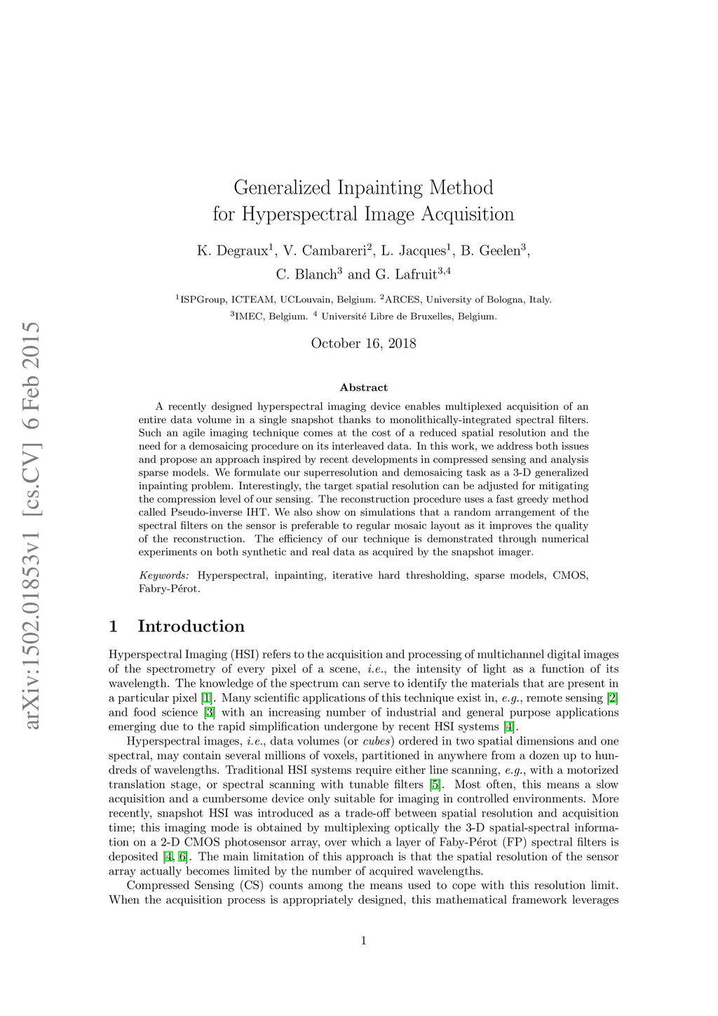 Generalized Inpainting Method for Hyperspectral Image Acquisition