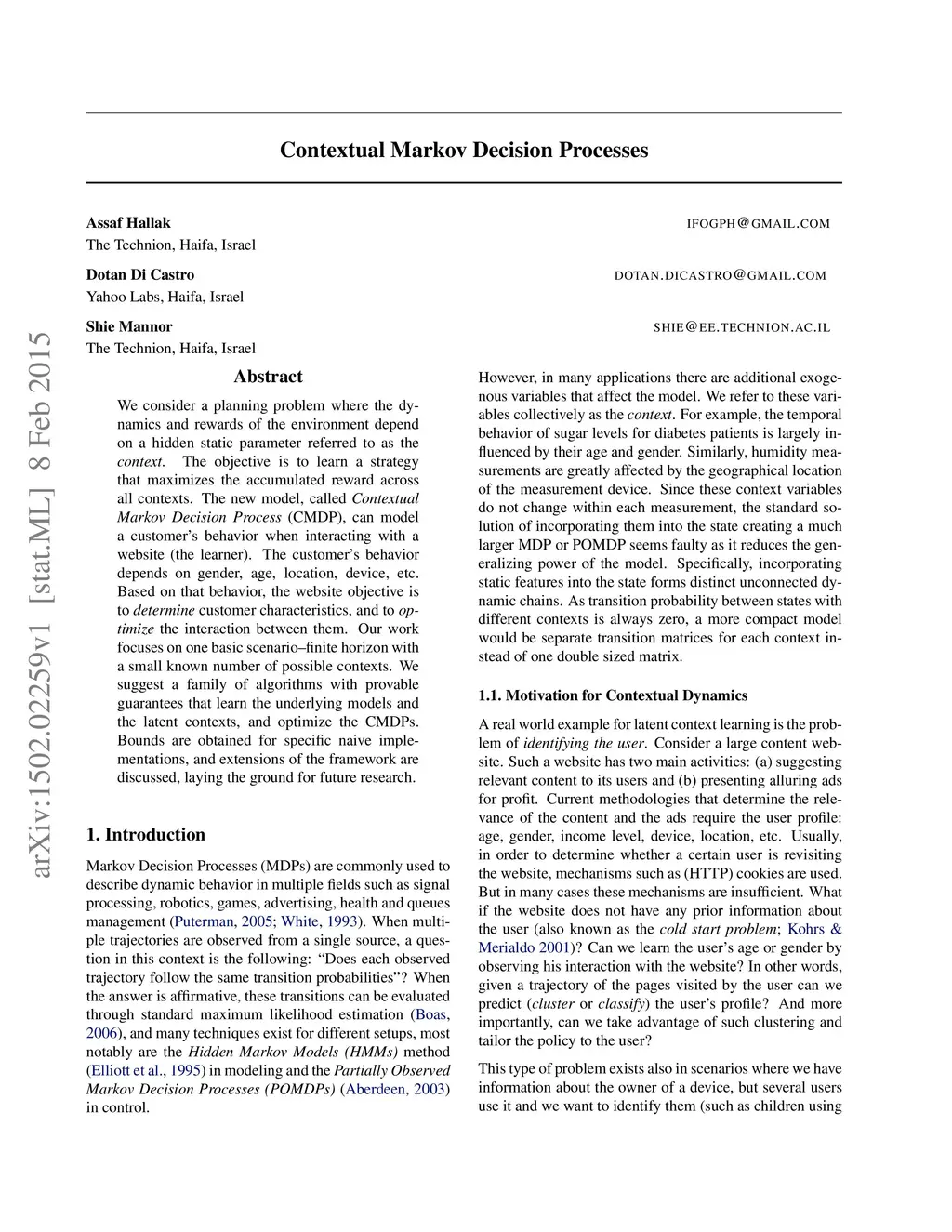 Contextual Markov Decision Processes