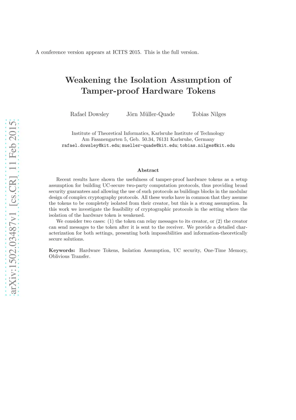 Weakening the Isolation Assumption of Tamper-proof Hardware Tokens