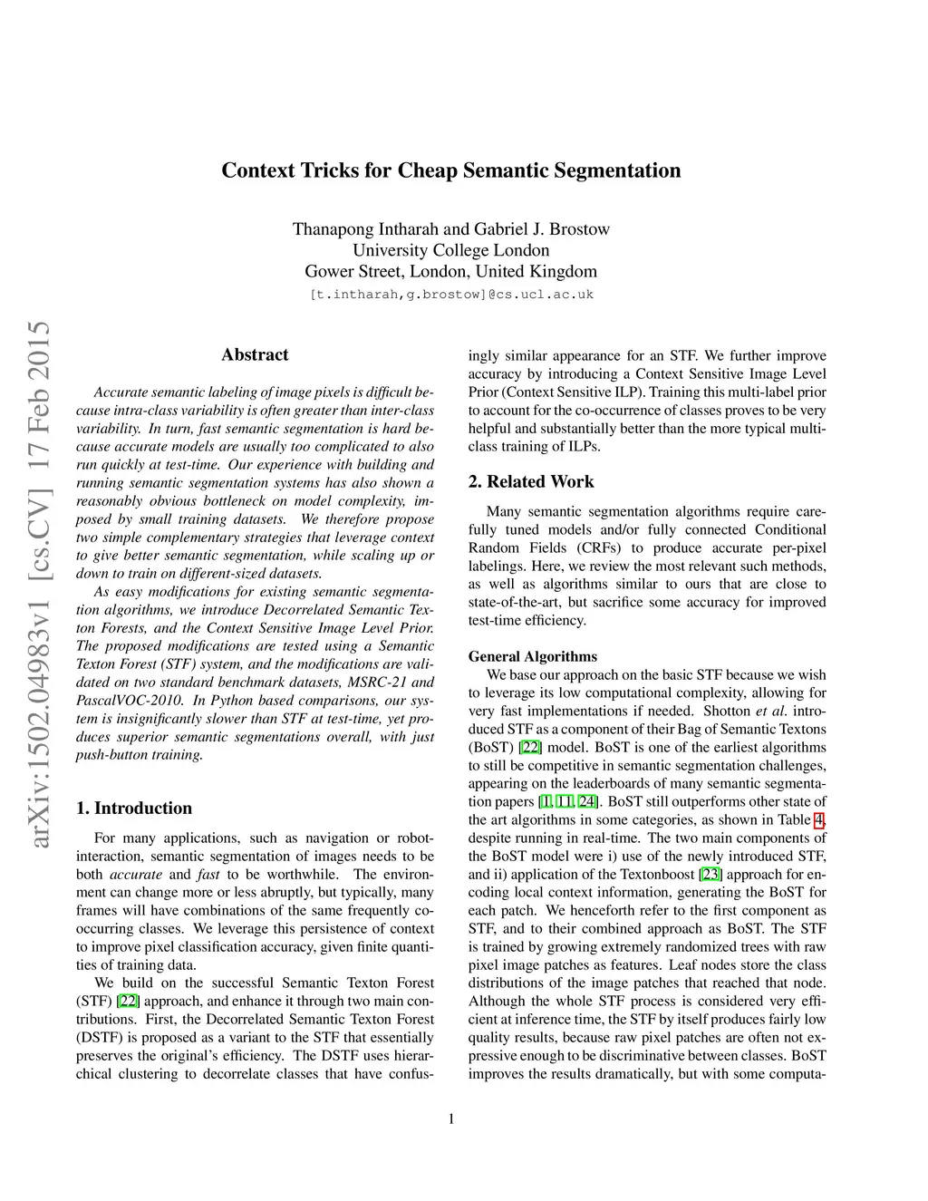 Accurate semantic labeling of image pixels is difficult because intra-class variability is often greater than inter-class variability. In turn, fast semantic segmentation is hard because accurate models are usually too complicated to also run quickly at test-time. Our experience with building and running semantic segmentation systems has also shown a reasonably obvious bottleneck on model complexity, imposed by small training datasets. We therefore propose two simple complementary strategies that leverage context to give better semantic segmentation, while scaling up or down to train on different-sized datasets. As easy modifications for existing semantic segmentation algorithms, we introduce Decorrelated Semantic Texton Forests, and the Context Sensitive Image Level Prior. The proposed modifications are tested using a Semantic Texton Forest (STF) system, and the modifications are validated on two standard benchmark datasets, MSRC-21 and PascalVOC-2010. In Python based comparisons, our system is insignificantly slower than STF at test-time, yet produces superior semantic segmentations overall, with just push-button training.