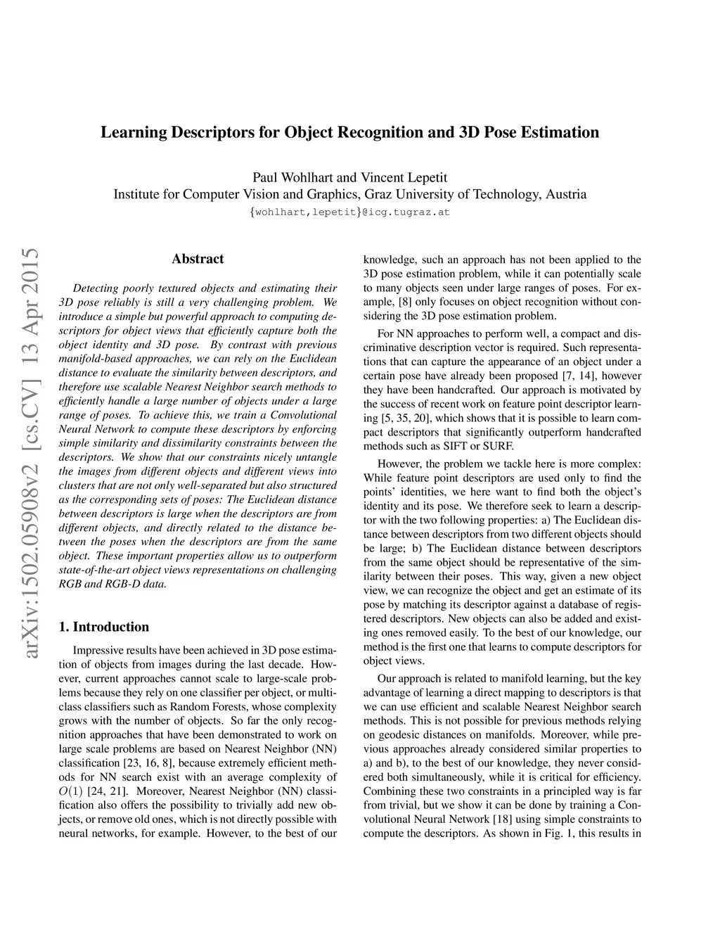 Learning Descriptors for Object Recognition and 3D Pose Estimation