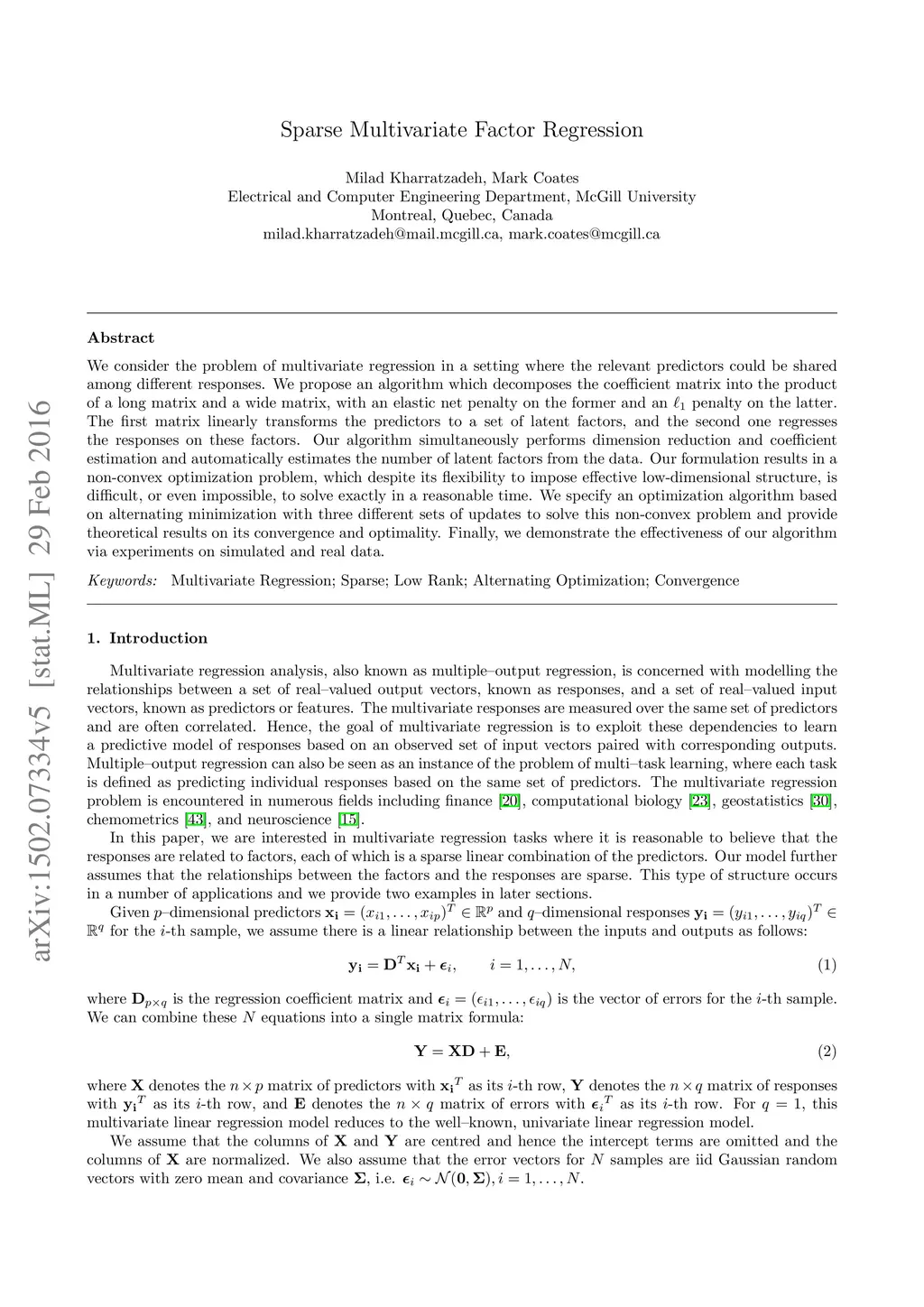 Sparse Multivariate Factor Regression