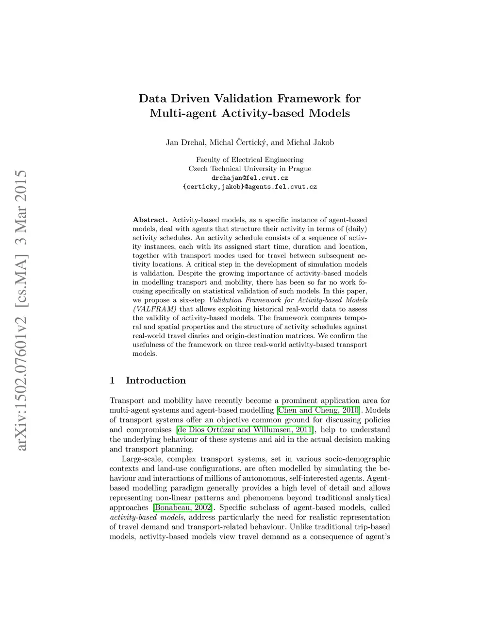 Activity-based models, as a specific instance of agent-based models, deal with agents that structure their activity in terms of (daily) activity schedules. An activity schedule consists of a sequence of activity instances, each with its assigned start time, duration and location, together with transport modes used for travel between subsequent activity locations. A critical step in the development of simulation models is validation. Despite the growing importance of activity-based models in modelling transport and mobility, there has been so far no work focusing specifically on statistical validation of such models. In this paper, we propose a six-step Validation Framework for Activity-based Models (VALFRAM) that allows exploiting historical real-world data to assess the validity of activity-based models. The framework compares temporal and spatial properties and the structure of activity schedules against real-world travel diaries and origin-destination matrices. We confirm the usefulness of the framework on three real-world activity-based transport models.