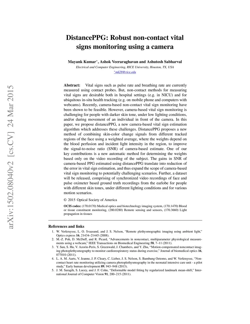 DistancePPG: Robust non-contact vital signs monitoring using a camera