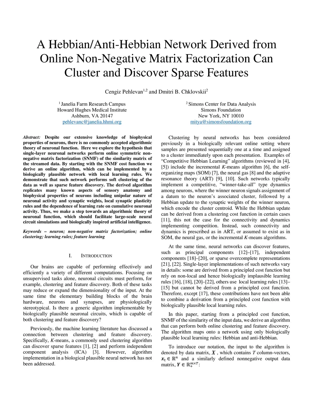 A Hebbian/Anti-Hebbian Network Derived from Online Non-Negative Matrix