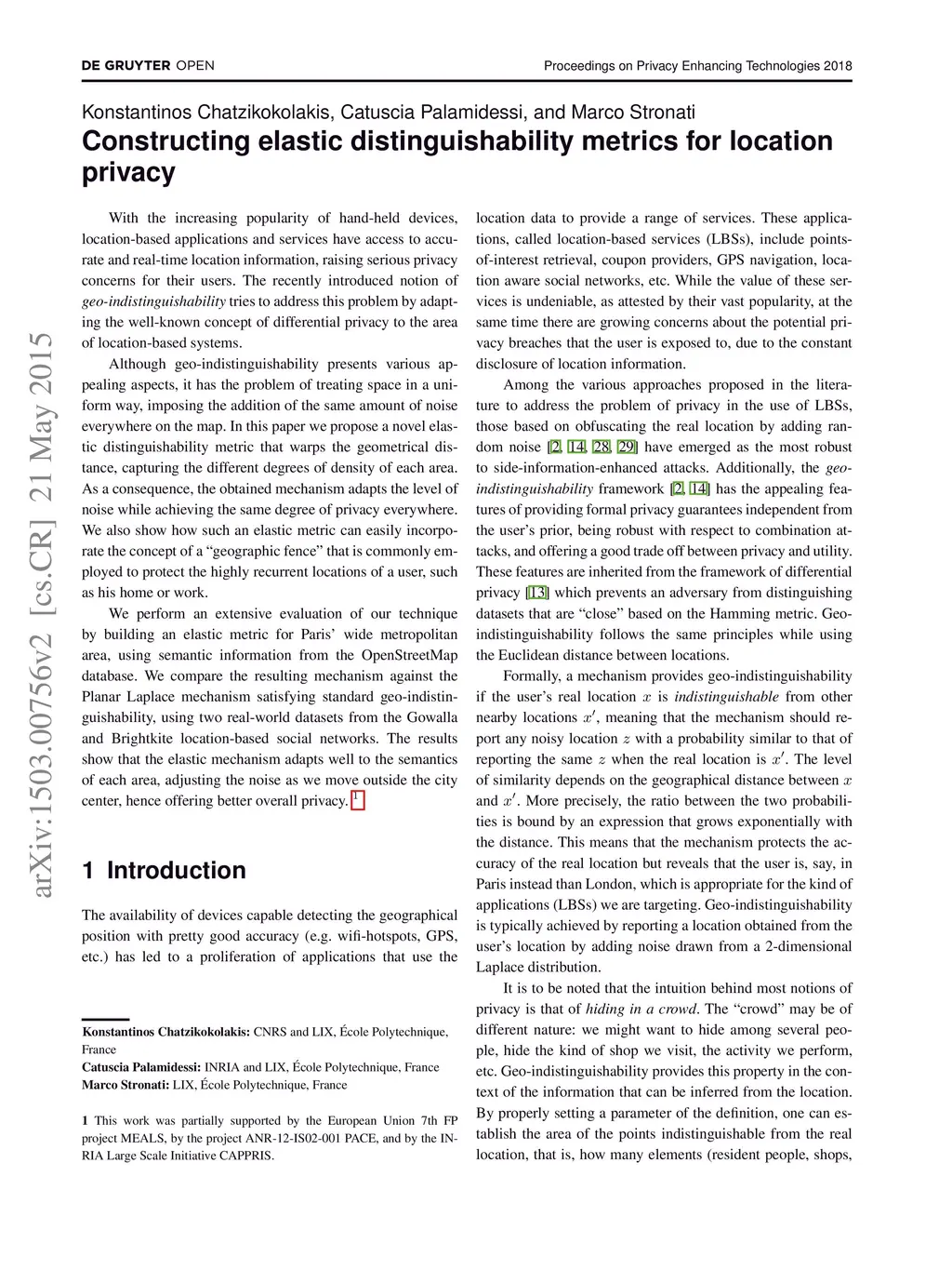 With the increasing popularity of hand-held devices, location-based applications and services have access to accurate and real-time location information, raising serious privacy concerns for their users. The recently introduced notion of geo-indistinguishability tries to address this problem by adapting the well-known concept of differential privacy to the area of location-based systems. Although geo-indistinguishability presents various appealing aspects, it has the problem of treating space in a uniform way, imposing the addition of the same amount of noise everywhere on the map. In this paper we propose a novel elastic distinguishability metric that warps the geometrical distance, capturing the different degrees of density of each area. As a consequence, the obtained mechanism adapts the level of noise while achieving the same degree of privacy everywhere. We also show how such an elastic metric can easily incorporate the concept of a "geographic fence" that is commonly employed to protect the highly recurrent locations of a user, such as his home or work. We perform an extensive evaluation of our technique by building an elastic metric for Paris' wide metropolitan area, using semantic information from the OpenStreetMap database. We compare the resulting mechanism against the Planar Laplace mechanism satisfying standard geo-indistinguishability, using two real-world datasets from the Gowalla and Brightkite location-based social networks. The results show that the elastic mechanism adapts well to the semantics of each area, adjusting the noise as we move outside the city center, hence offering better overall privacy.