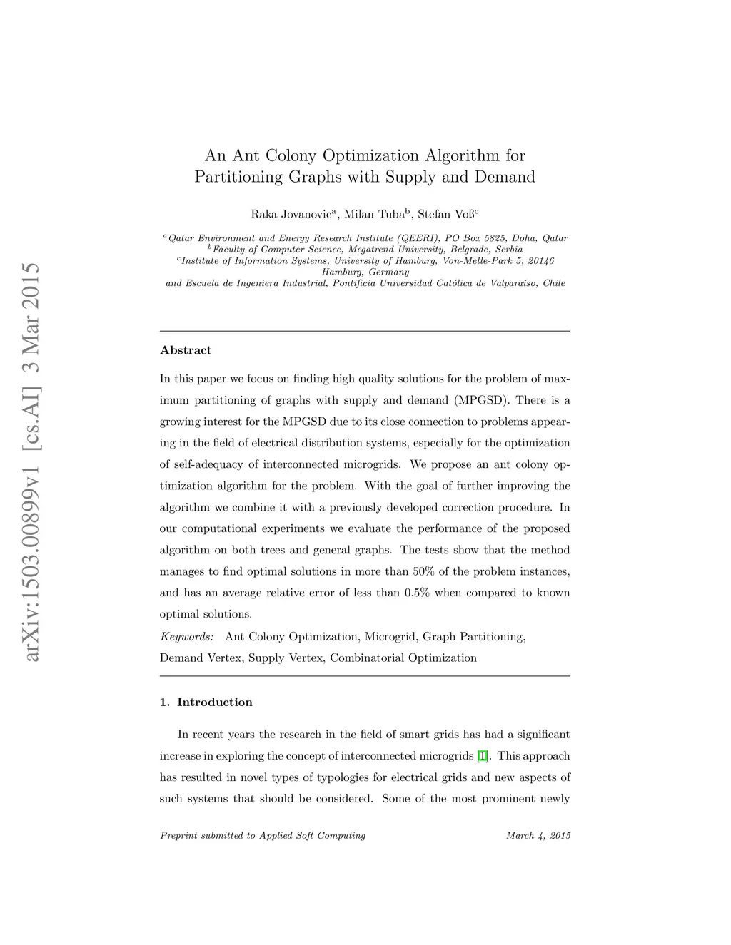 An Ant Colony Optimization Algorithm for Partitioning Graphs with Supply