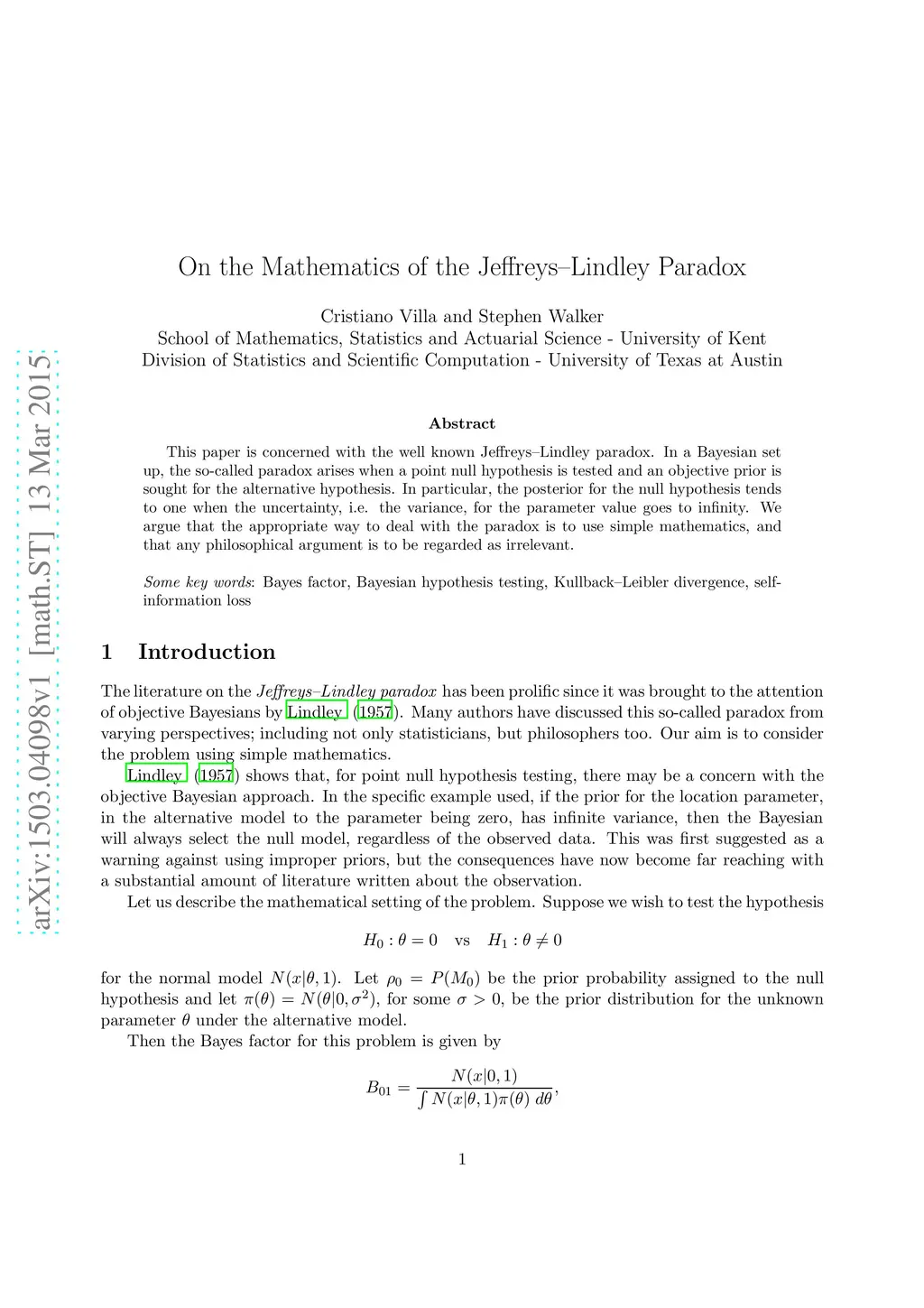 On the Mathematics of the Jeffreys-Lindley Paradox