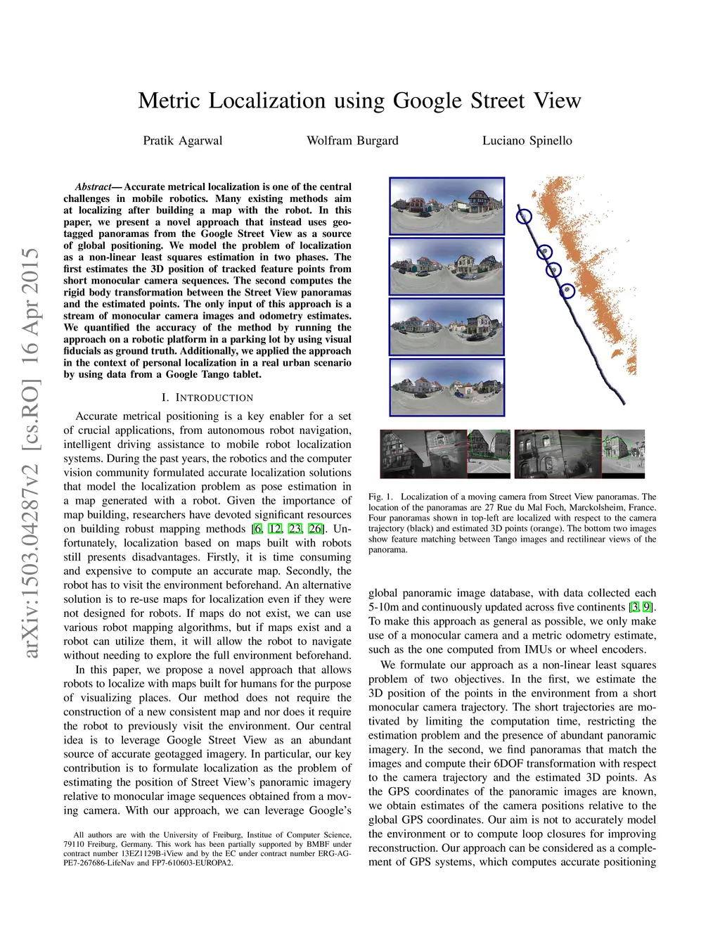 Metric Localization using Google Street View