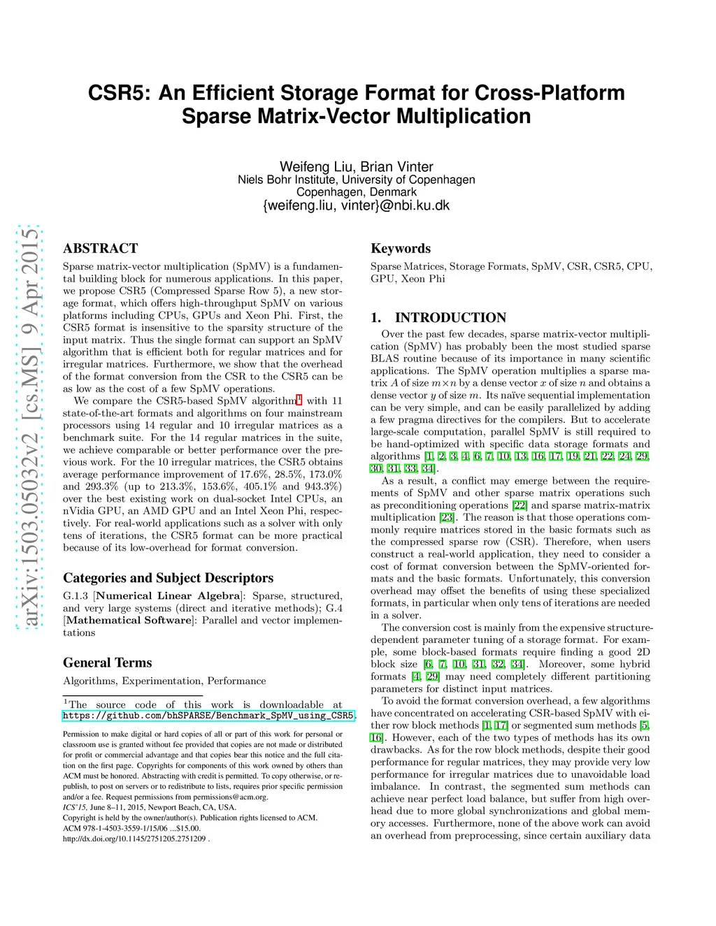 CSR5: An Efficient Storage Format for Cross-Platform Sparse