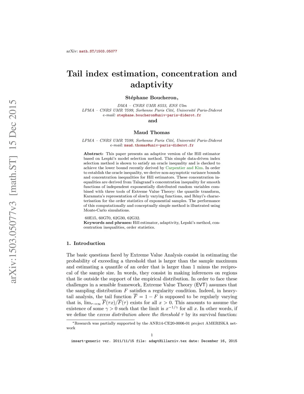 This paper presents an adaptive version of the Hill estimator based on Lespki's model selection method. This simple data-driven index selection method is shown to satisfy an oracle inequality and is checked to achieve the lower bound recently derived by Carpentier and Kim. In order to establish the oracle inequality, we derive non-asymptotic variance bounds and concentration inequalities for Hill estimators. These concentration inequalities are derived from Talagrand's concentration inequality for smooth functions of independent exponentially distributed random variables combined with three tools of Extreme Value Theory: the quantile transform, Karamata's representation of slowly varying functions, and R\ényi's characterisation of the order statistics of exponential samples. The performance of this computationally and conceptually simple method is illustrated using Monte-Carlo simulations.