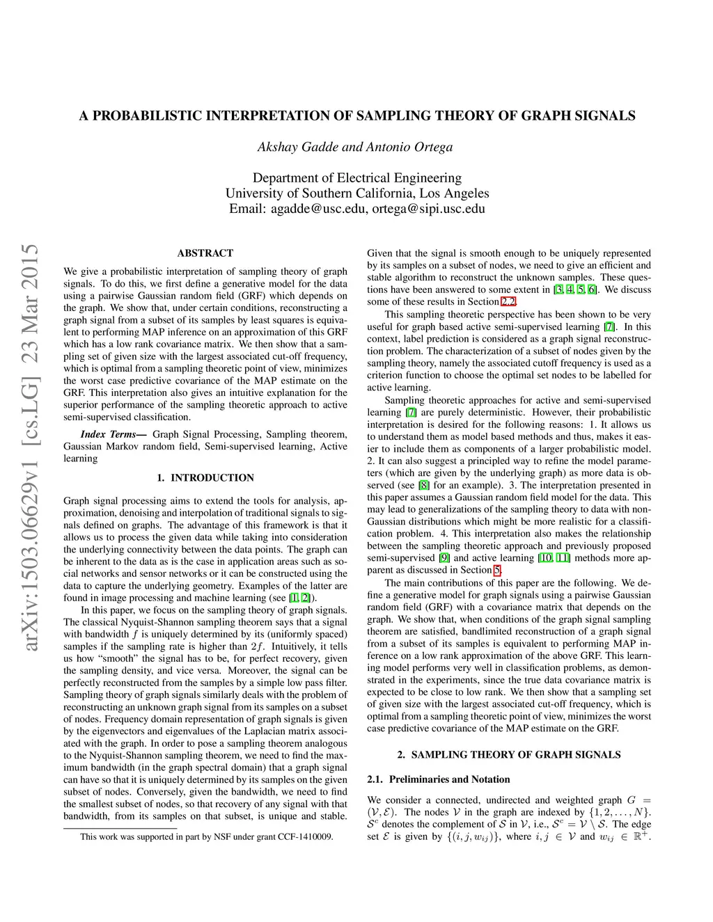 A Probabilistic Interpretation of Sampling Theory of Graph Signals