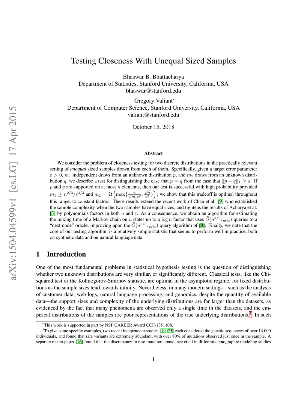 We consider the problem of closeness testing for two discrete distributions in the practically relevant setting of \emph{unequal} sized samples drawn from each of them. Specifically, given a target error parameter , independent draws from an unknown distribution and draws from an unknown distribution , we describe a test for distinguishing the case that from the case that . If and are supported on at most elements, then our test is successful with high probability provided and we show that this tradeoff is optimal throughout this range, to constant factors. These results extend the recent work of Chan et al. who established the sample complexity when the two samples have equal sizes, and tightens the results of Acharya et al. by polynomials factors in both and . As a consequence, we obtain an algorithm for estimating the mixing time of a Markov chain on states up to a factor that uses queries to a "next node" oracle, improving upon the query algorithm of Batu et al. Finally, we note that the core of our testing algorithm is a relatively simple statistic that seems to perform well in practice, both on synthetic data and on natural language data.