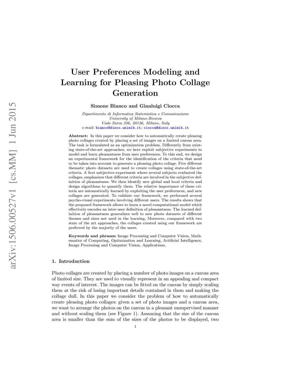 User Preferences Modeling and Learning for Pleasing Photo Collage