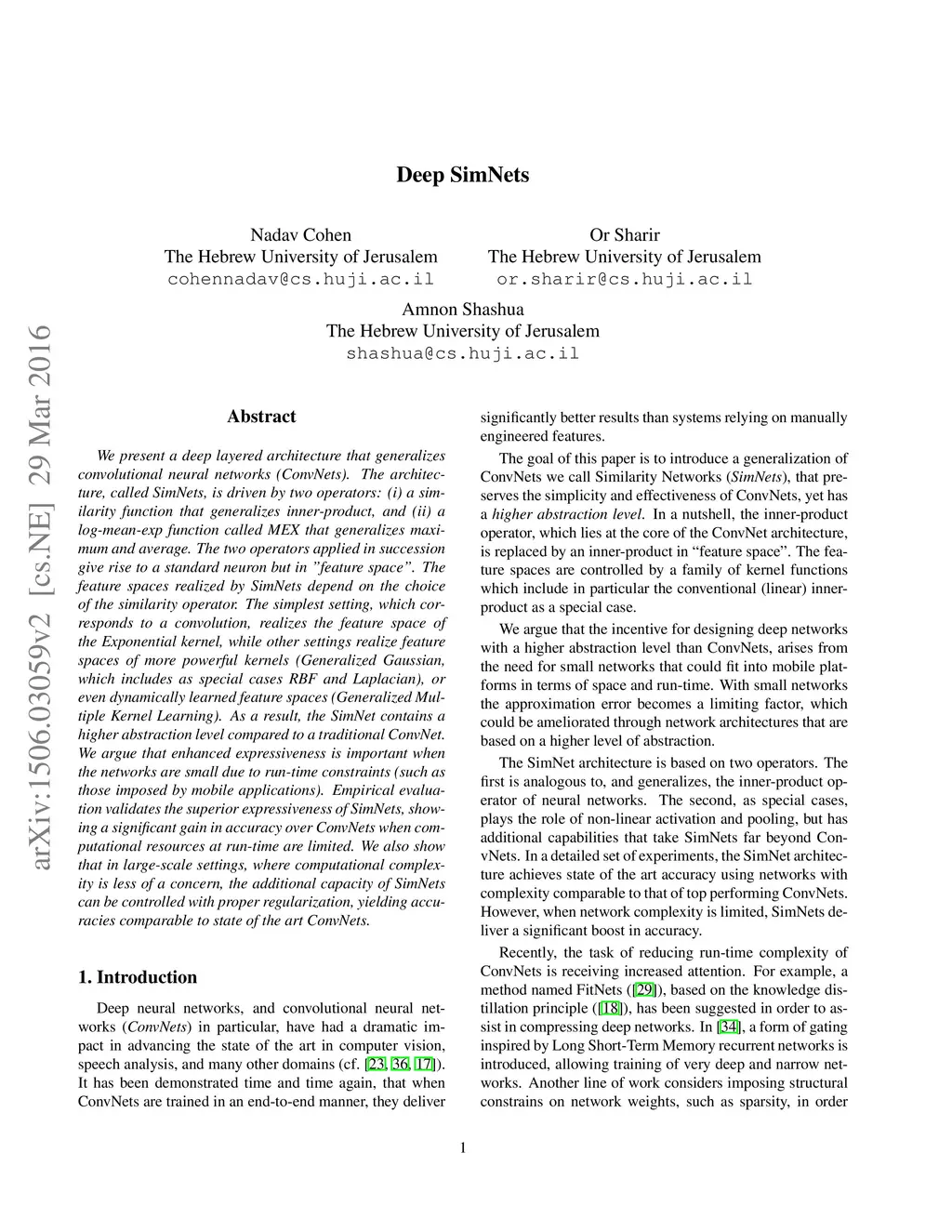 Deep SimNets