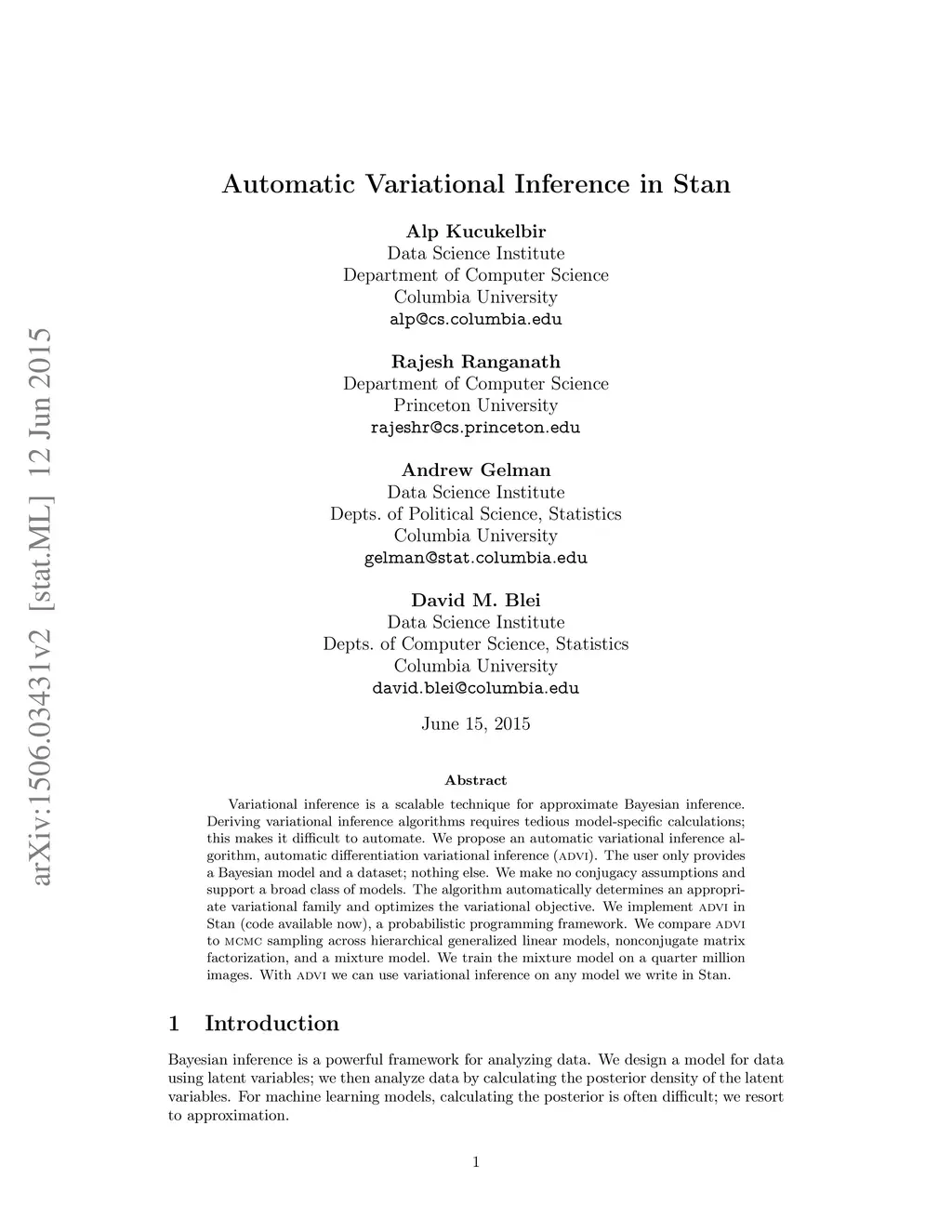 Automatic Variational Inference in Stan
